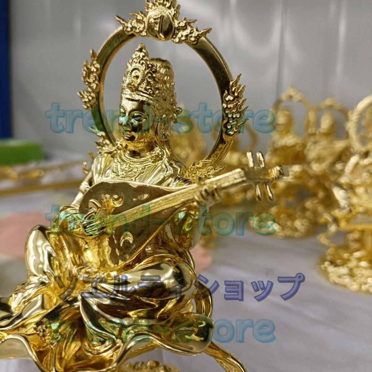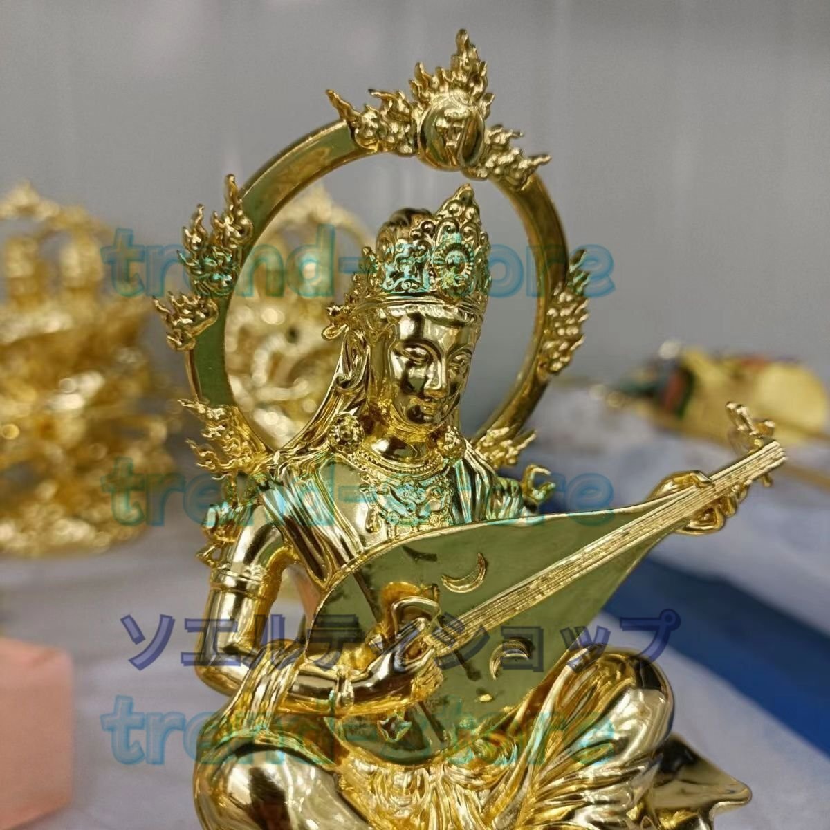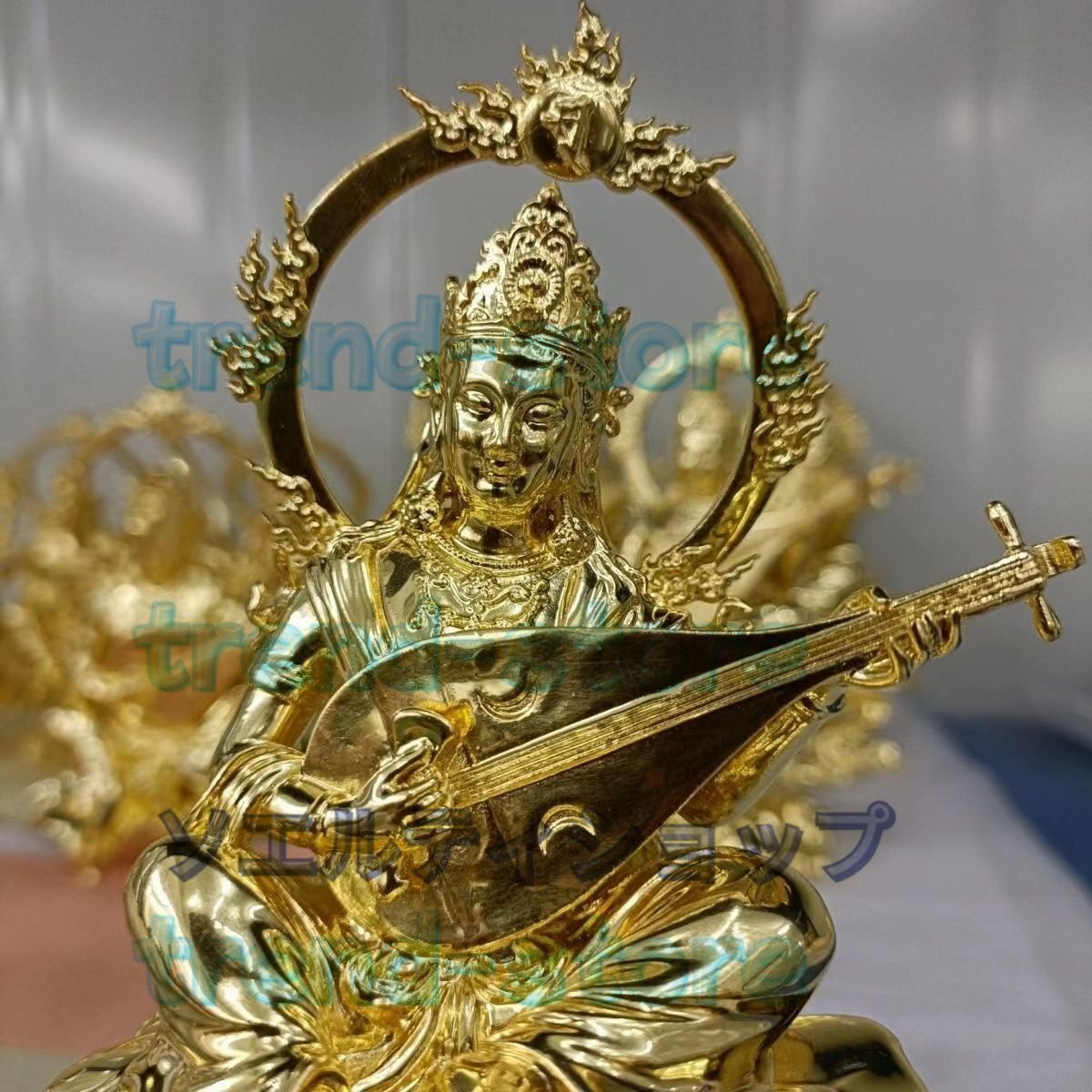 新入荷★辨財天 金箔 切金 仏師手仕上げ品 仏像 仏教芸術品 響銅製磨き仕上げ 高さ15cm