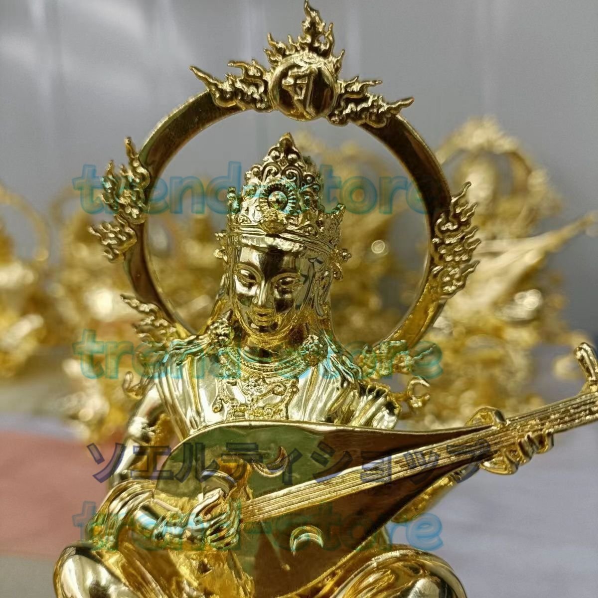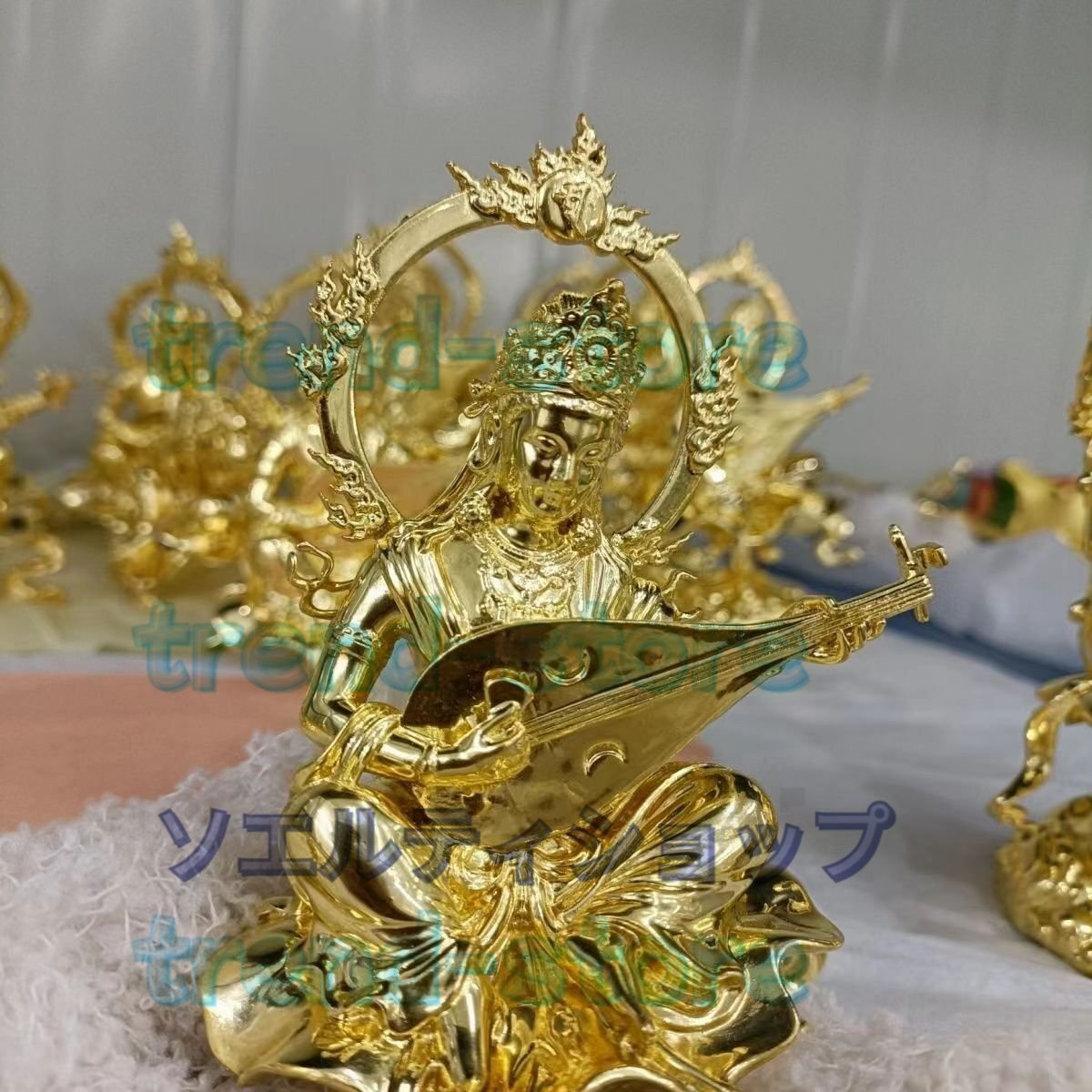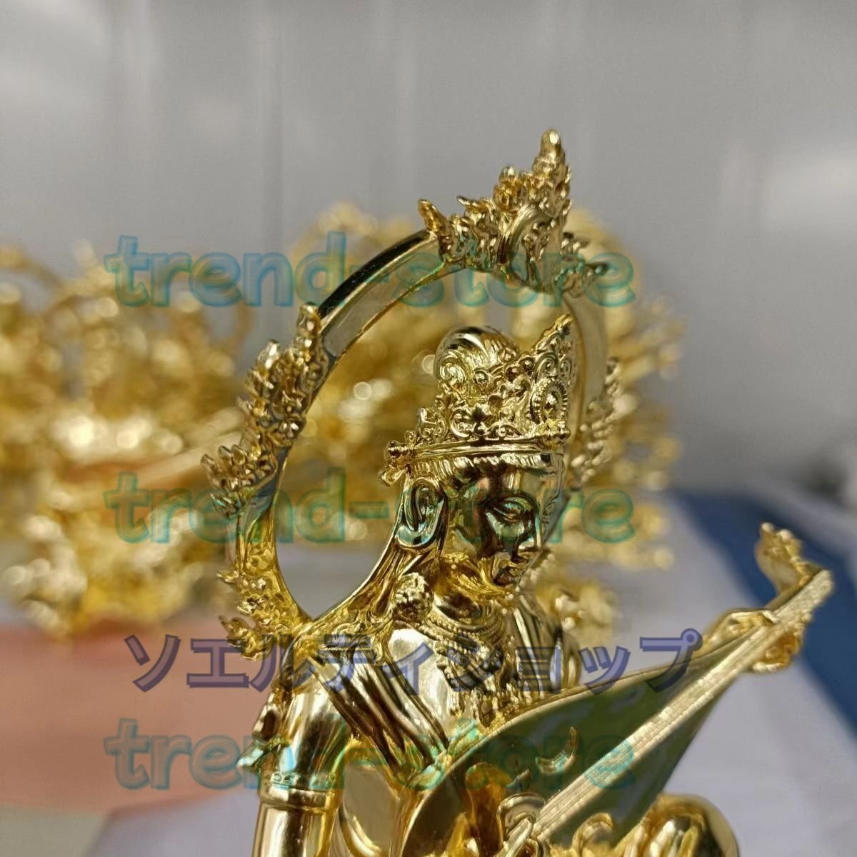 新入荷★辨財天 金箔 切金 仏師手仕上げ品 仏像 仏教芸術品 響銅製磨き仕上げ 高さ15cm