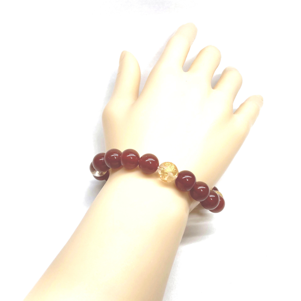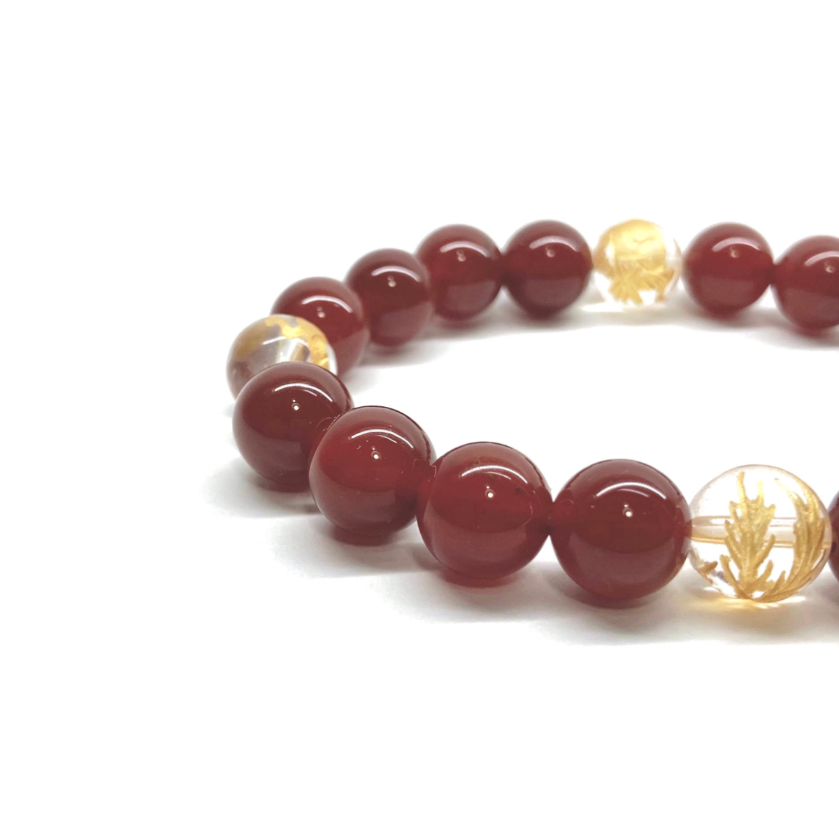 10mm 四神獣金彫水晶×赤瑪瑙 パワーストーン ブレスレット天然石 運気上昇 開運 金運 恋愛運 お守り 青龍 白虎 玄武 朱雀 シンプル