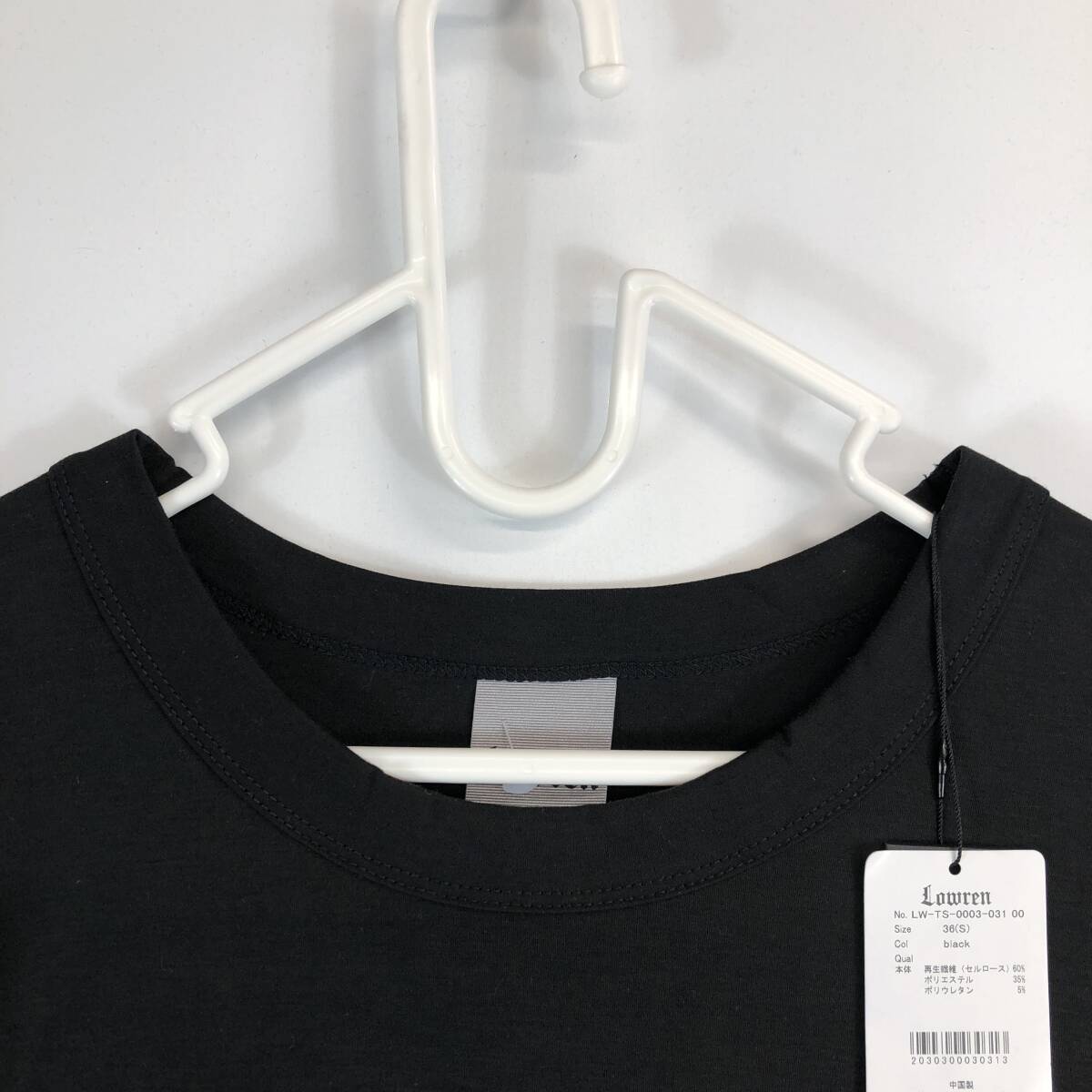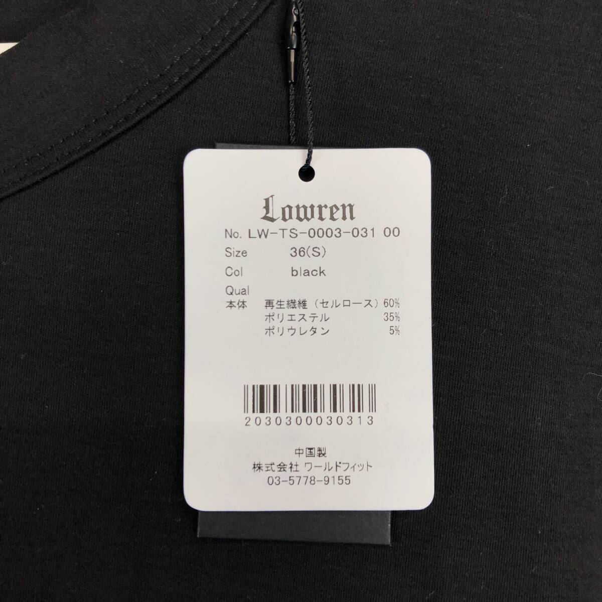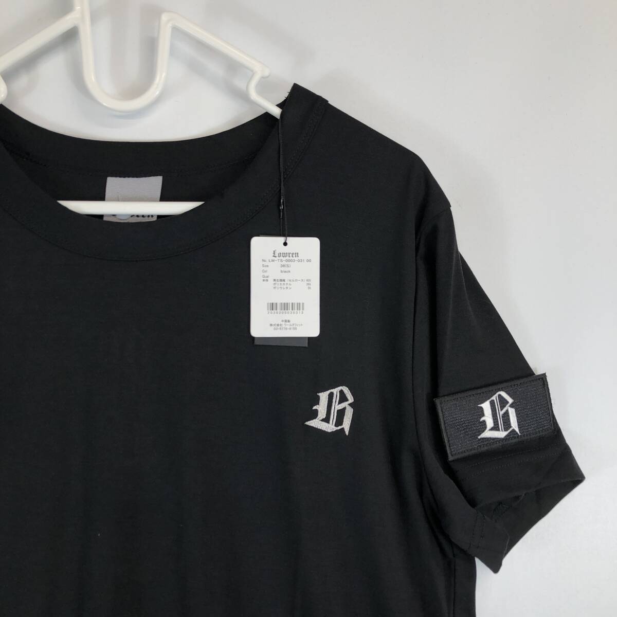 未使用 Lowren ローレン フィットネス 半袖Tシャツ ブラック 冷感生地 36(Sサイズ) 袖ワッペン 刺ロゴ ②