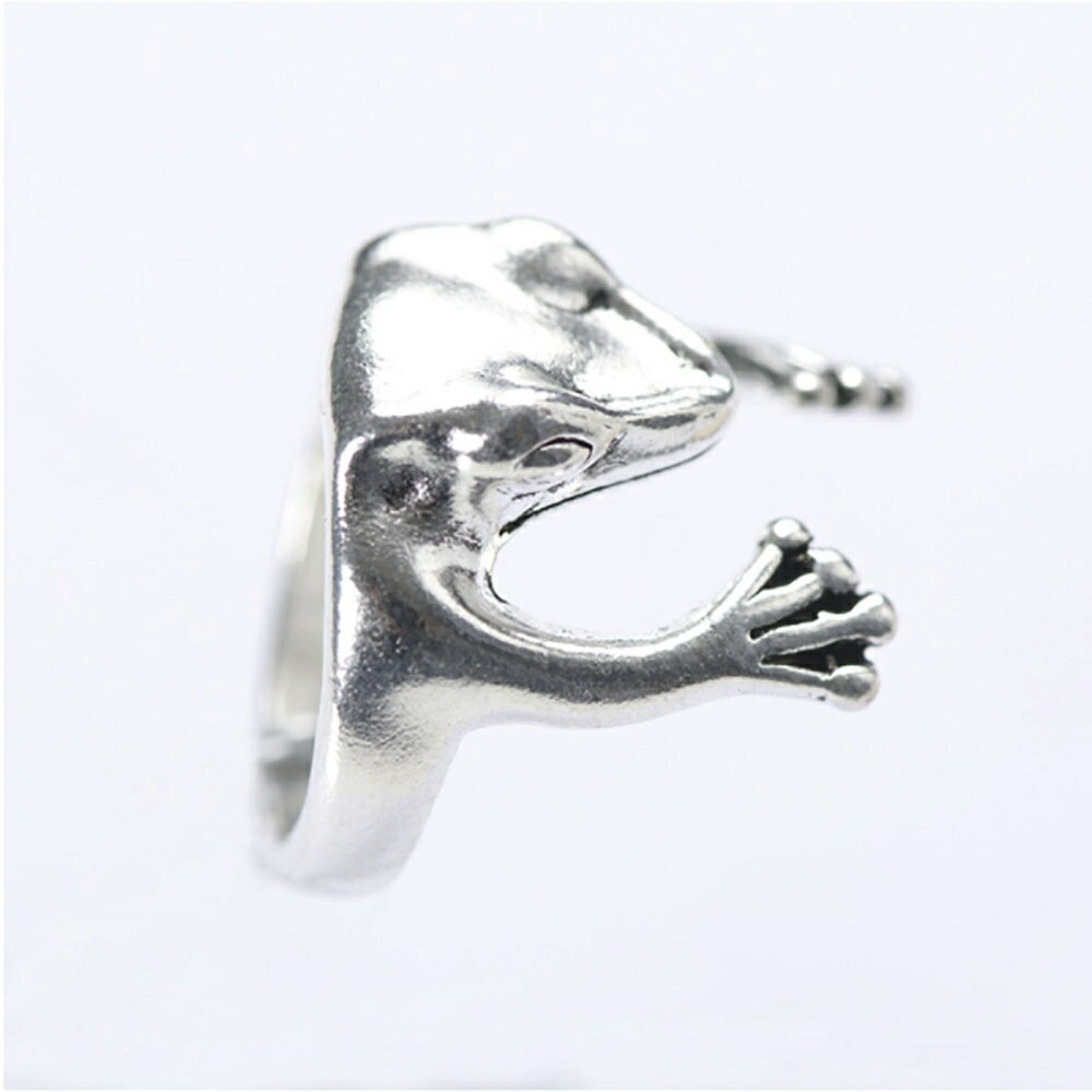 リング 上半身カエル 蛙 シルバーアクセサリー シルバーリング 指輪 銀 フリーサイズ サイズ調整可能 蛙 フロッグ かえる 金運 安全 無事に帰る 願掛け ユニーク キュート ピンキー ピンキーリング ファンタジー メンズ レディース アクセサリー アニマル 爬虫類 蛙 合金製 アマガエル