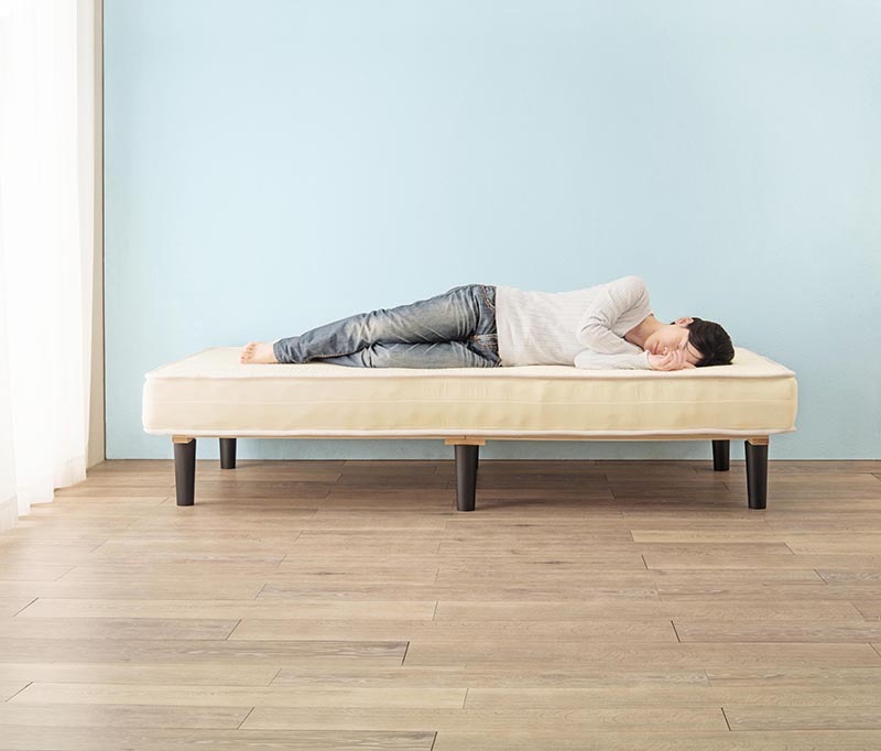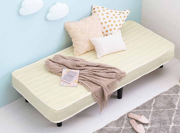 耐圧分散に優れたボンネルコイルマットレス付きのすのこベッド。SSS(セミシングルショート)サイズ。