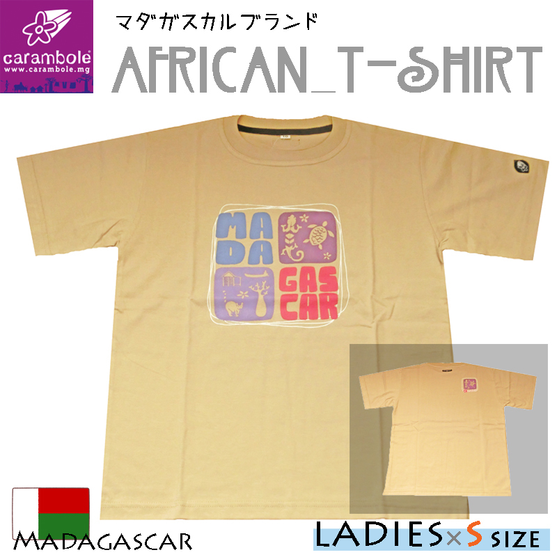 【レディース×ベージュ】エスニック アジアン アフリカ Tシャツ キャンプ 山ガール アウトドア キャンプ フェス マダガスカル