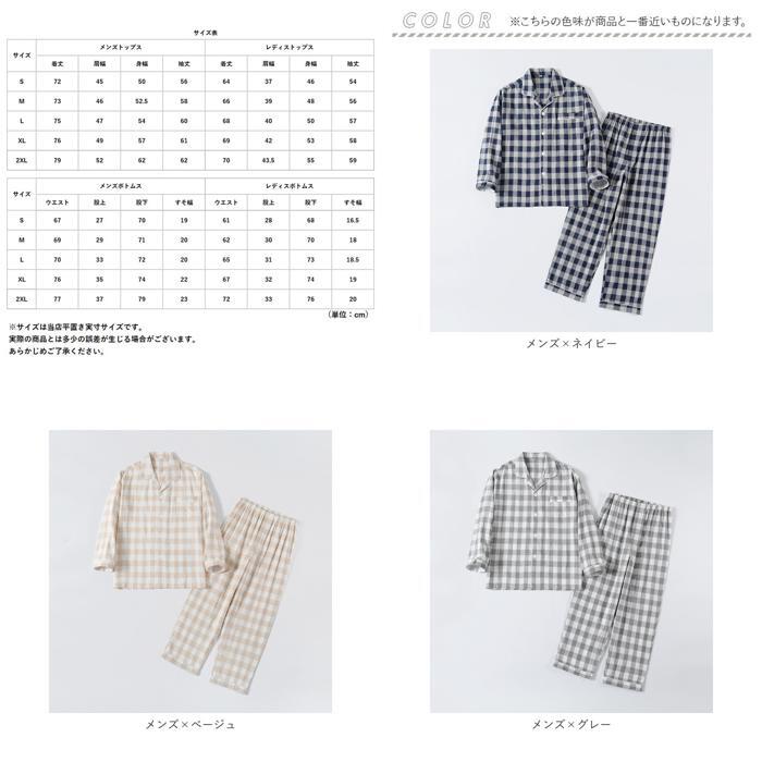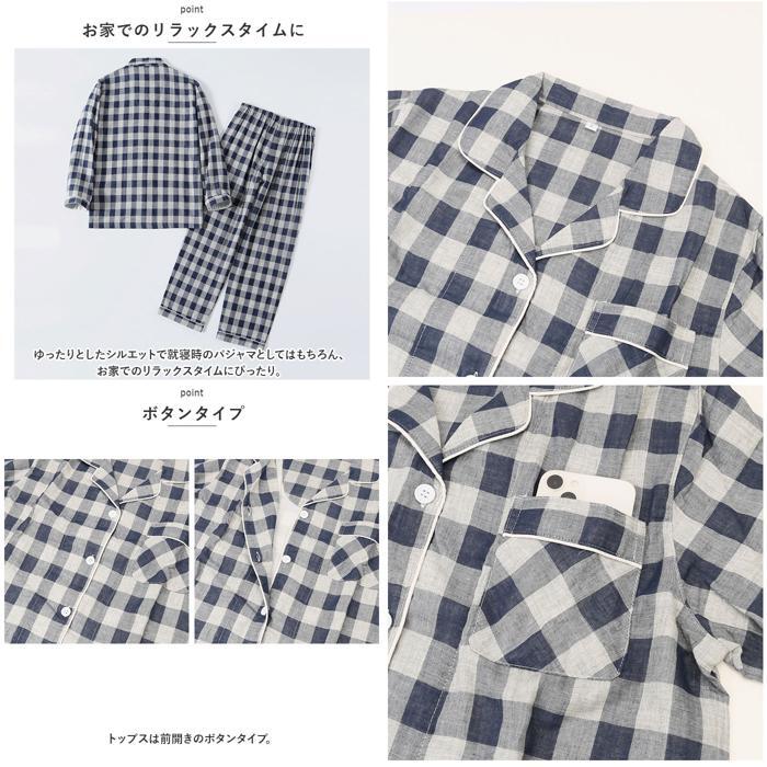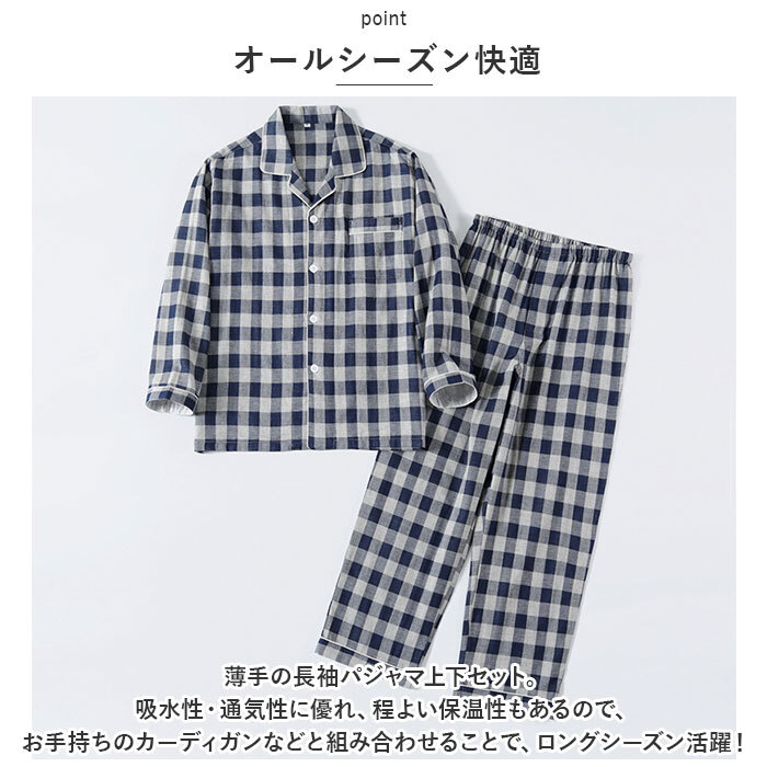 商品説明 | ・・ナチュラル可愛い、チェック柄のパジャマパンツ♪ ・【オールシーズン快適】 ・薄手の長袖パジャマ上下セット。吸水性・通気性に優れ、程よい保温性もあるので、寒い時期はお手持ちのカーディガンなどと組み合わせることで、ロングシーズン活躍! ・【ダブルガーゼ仕様】 ・洗うほどに柔らかくなるダブルガーゼ仕様。 ・【ボタンタイプ】 ・トップスは前開きのボタンタイプ。 ・【ウエストゴム仕様】 ・ズボンは締めつけ感のないウエストゴム仕様なので、着脱がスムーズ。 ・【あると何かと便利】 ・左胸にはあると何かと便利なポケット付き。 ・【お家でのリラックスタイムに】 ・ゆったりとしたシルエットで就寝時のパジャマとしてはもちろん、お家でのリラックスタイムにぴったり。 ・【パートナーと揃えても♪】 ・メンズとレディースの展開があるのでパートナーとお揃いで揃えても♪ |