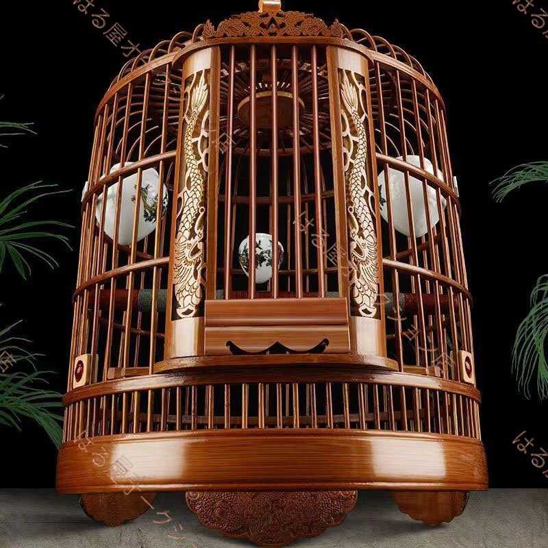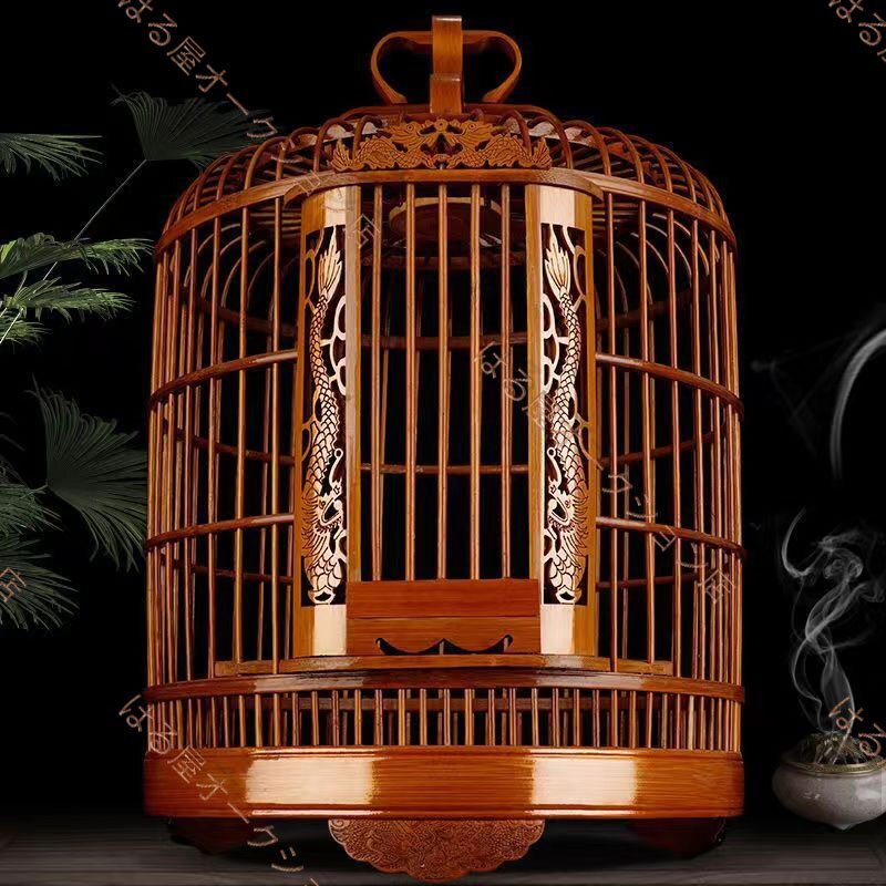 鳥かご 木彫り 彫刻 竹製 竹細工 アンティーク 木製 鳥籠 工芸品 龍
