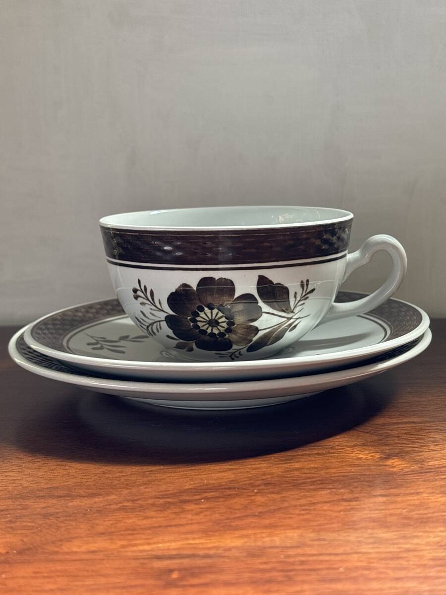 Royal Copenhagen ロイヤルコペンハーゲン Tranquebar トランクェーバー ブラウン ティーカップ&ソーサー、デザート皿セット ヴィンテージ