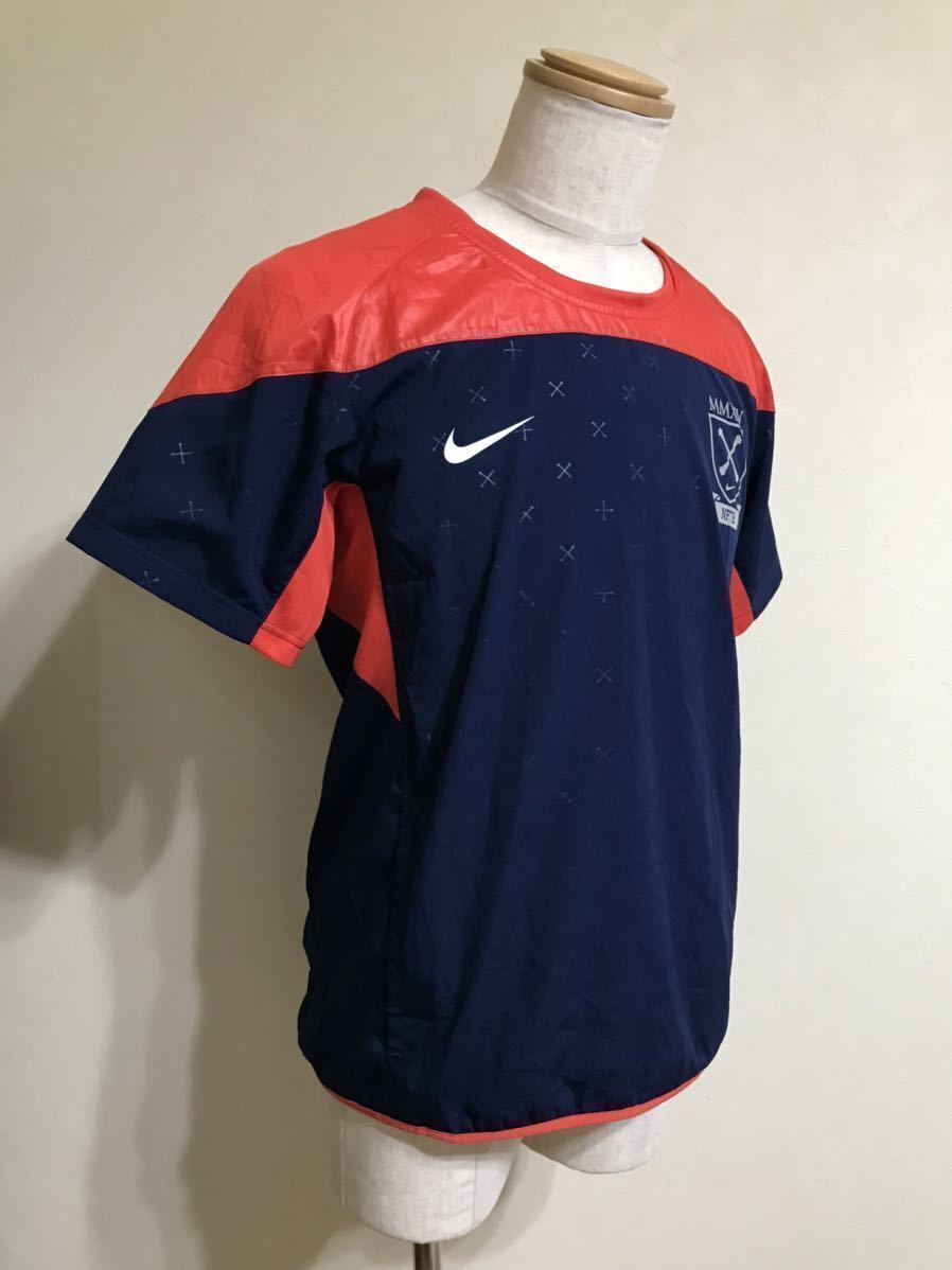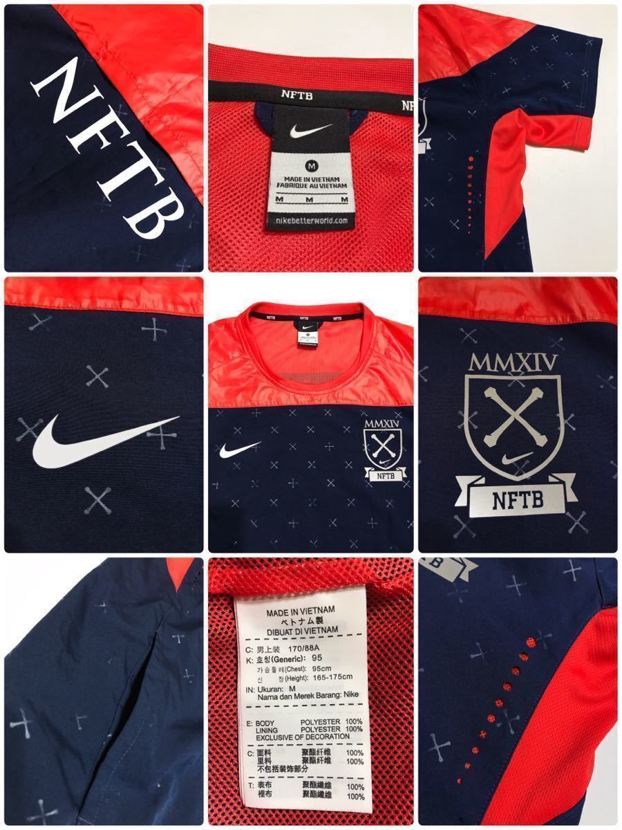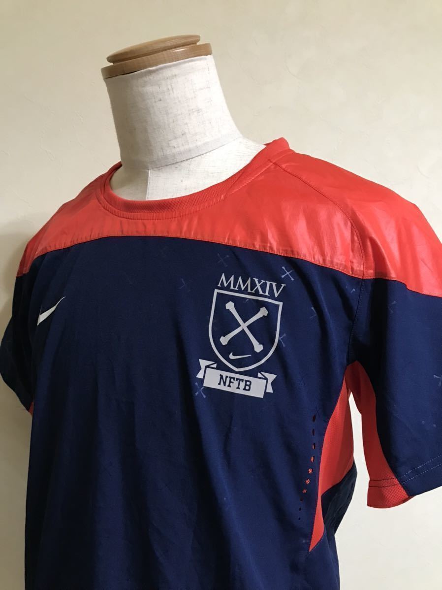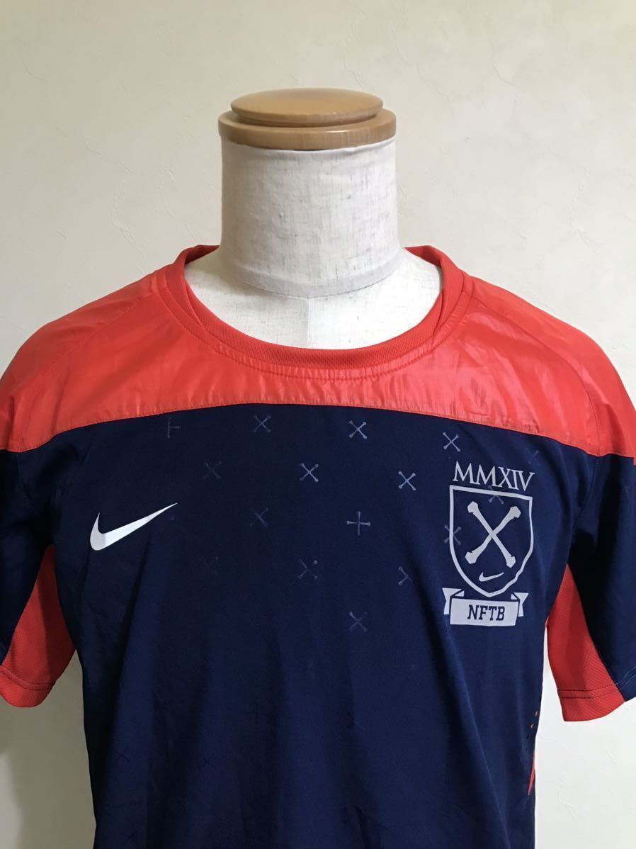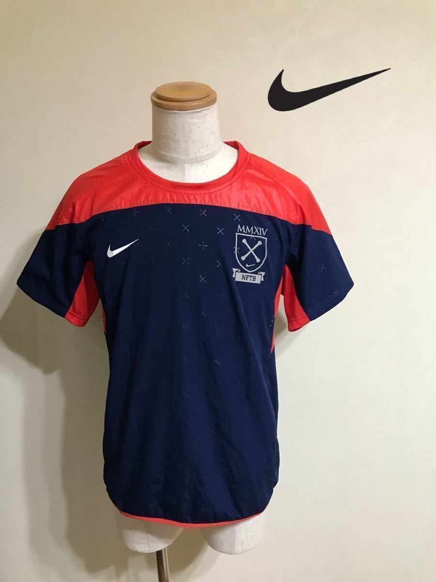 【良品】NIKE NFTB ナイキ フットボール ピステ 切替し トレーニング ウェア サッカー トップス サイズM 半袖 ネイビー 赤 170/88A 599680