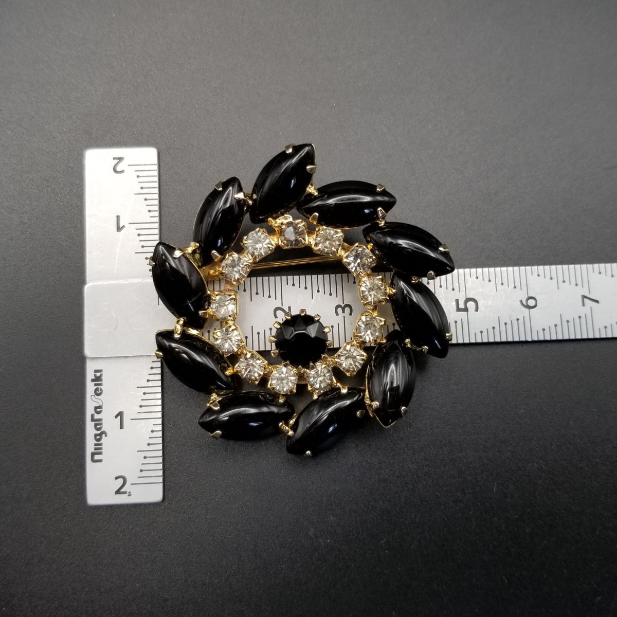 黒いカボション ラインストーン マーキスカット リース ヴィンテージ ブローチ クラシカル エレガント 上品 コスチュームジュエリー Y16-P