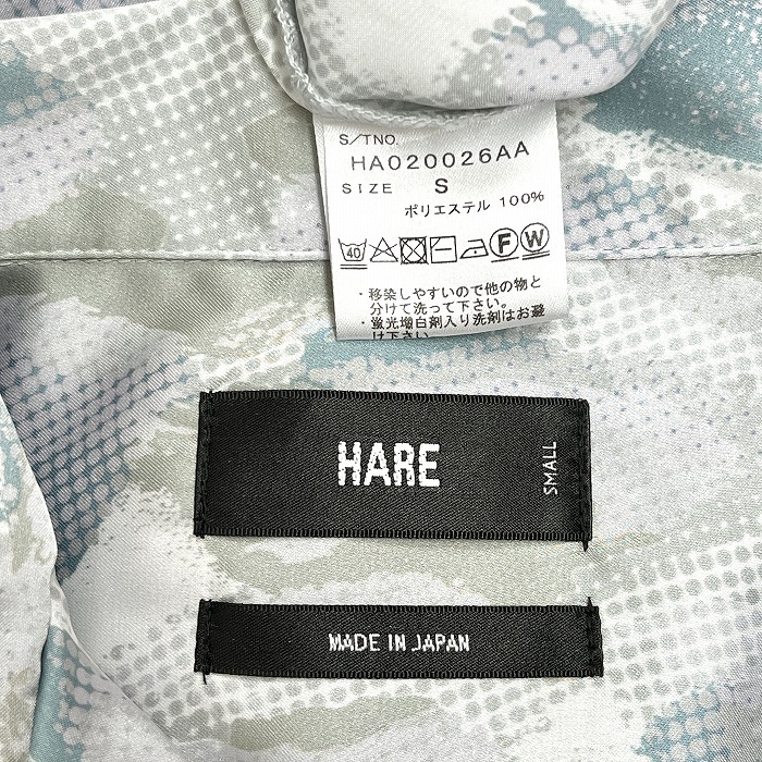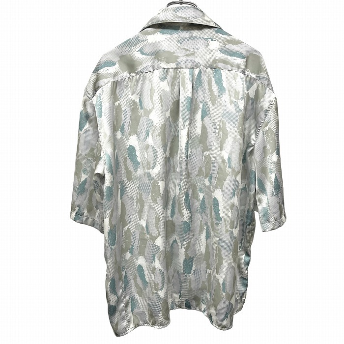 | 商品タイトル | ハレ HARE 少し薄手 オープンカラーシャツ ビッグシルエット 総柄 5分袖 胸ポケット ポリ100% S ネイビー 紺×グレーカーキ系×白 メンズ |
