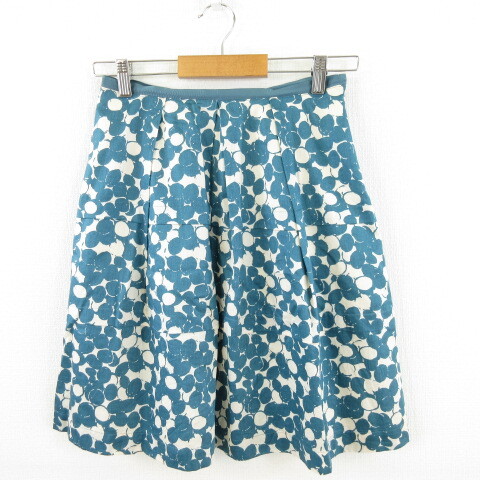 クミキョク 組曲 KUMIKYOKU スカート フレア ひざ丈 総柄 青 オフホワイト 2 *T631 レディース