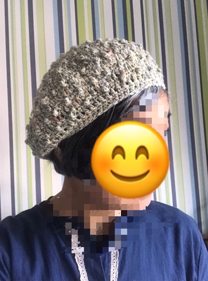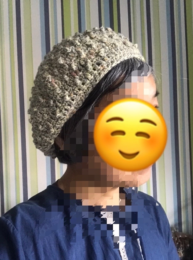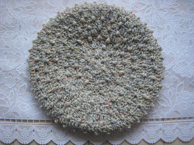 保温性と吸湿性に優れているウールシルクの糸でドット模様のおしゃれなベレー帽を編みました。