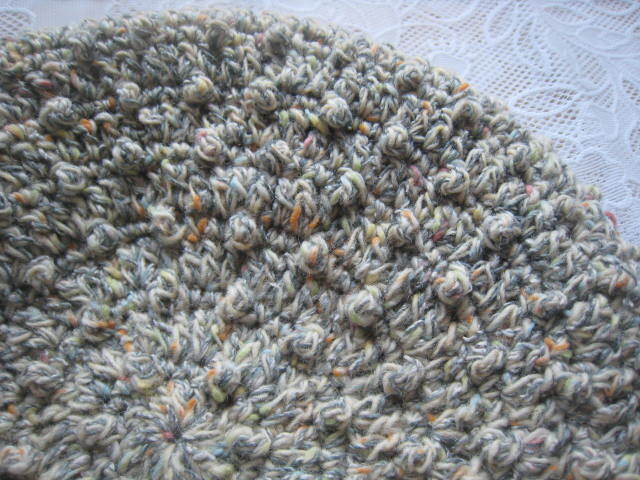 即決/手編み ハンドメイド ウールシルク 通気性よい ゆったり★ドット模様 ベレー帽 薄い杢グレー×カラーネップ ニット 帽子 キャップ