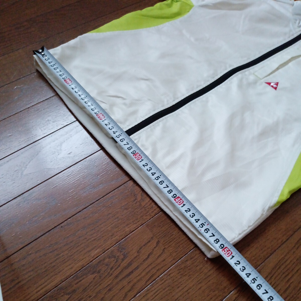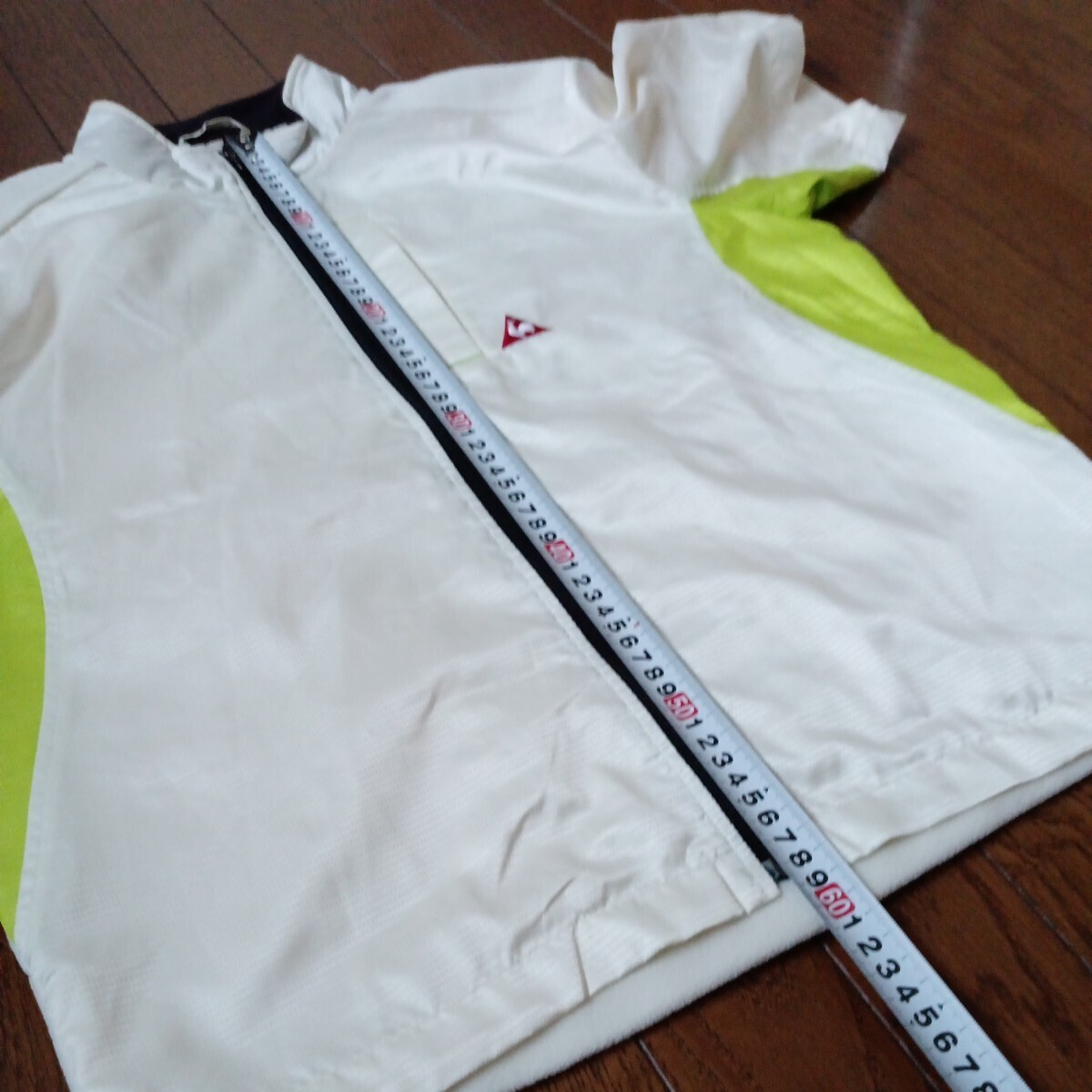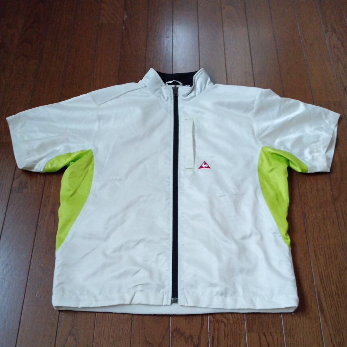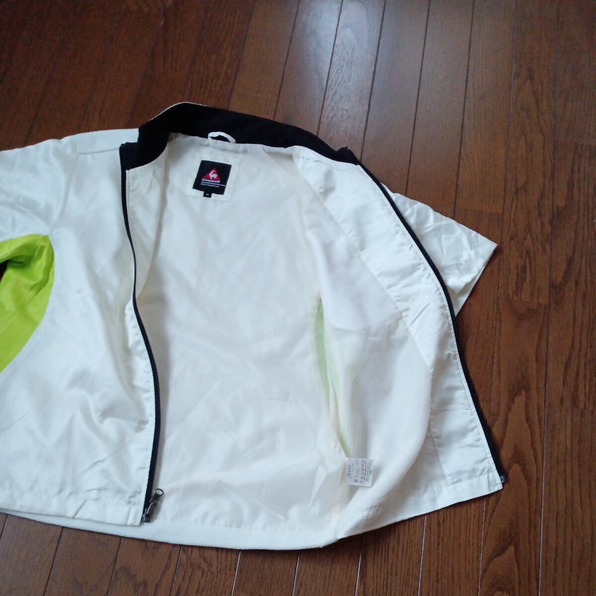 K-175【中古】le coqsportif golf ルコックゴルフ ゴルフウェア フルジップ ジャンパー ジャケット 半袖 白蛍光グリーン メンズ M