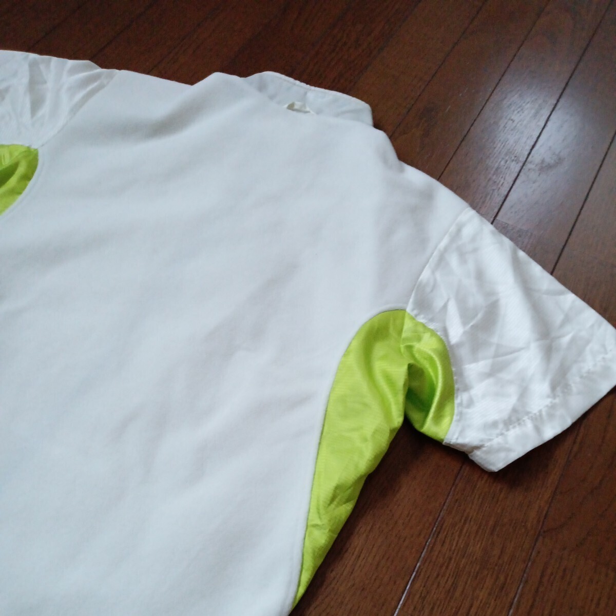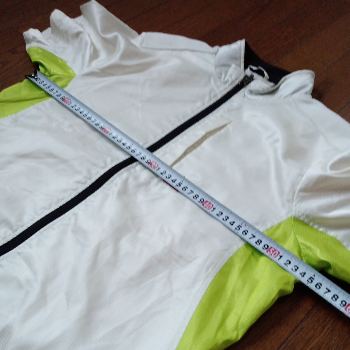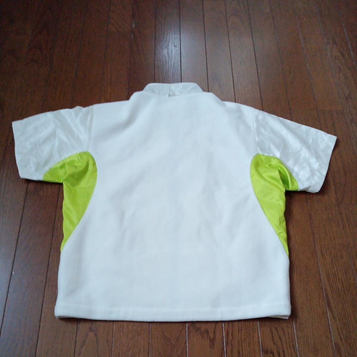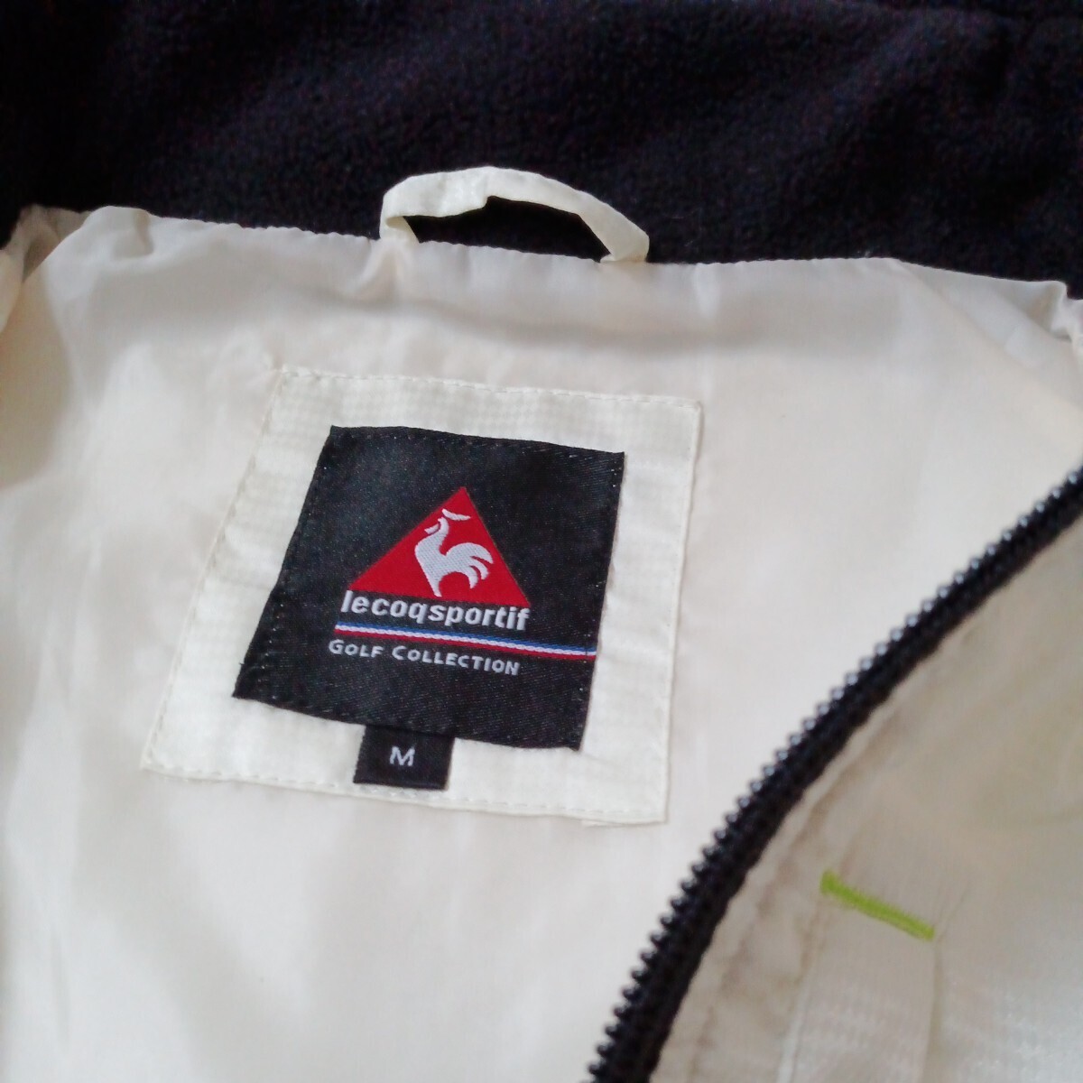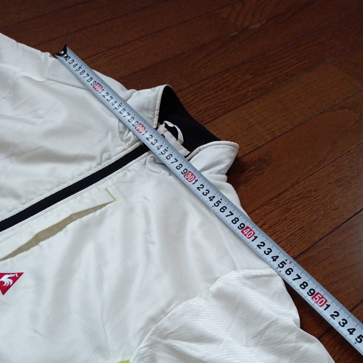 K-175【中古】le coqsportif golf ルコックゴルフ ゴルフウェア フルジップ ジャンパー ジャケット 半袖 白蛍光グリーン メンズ M