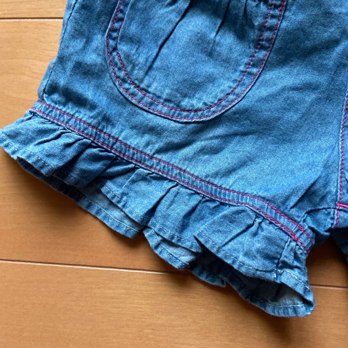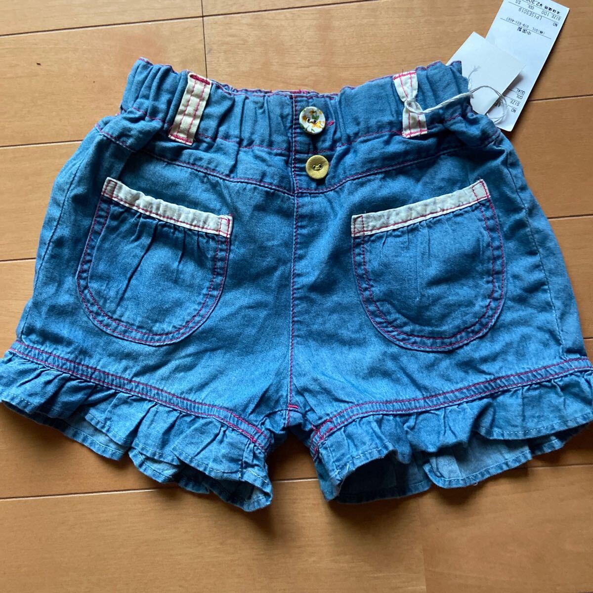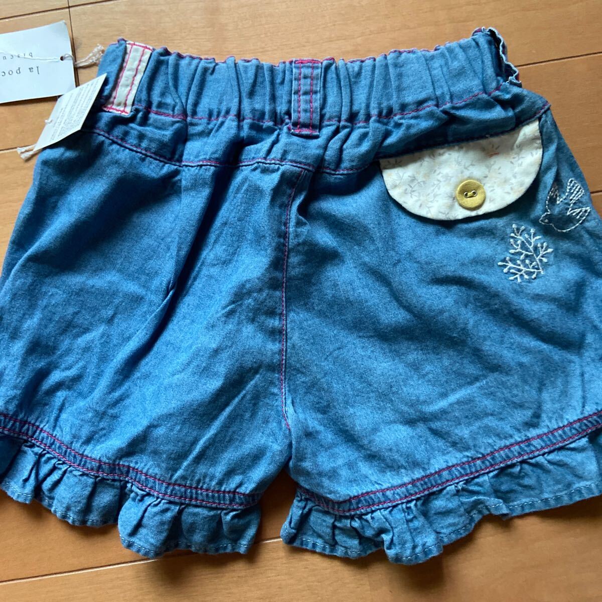 La poche biscuitラ・ポシェ・ビスキュイ☆裾フリル デニムショートパンツ♪サイズ100☆新品