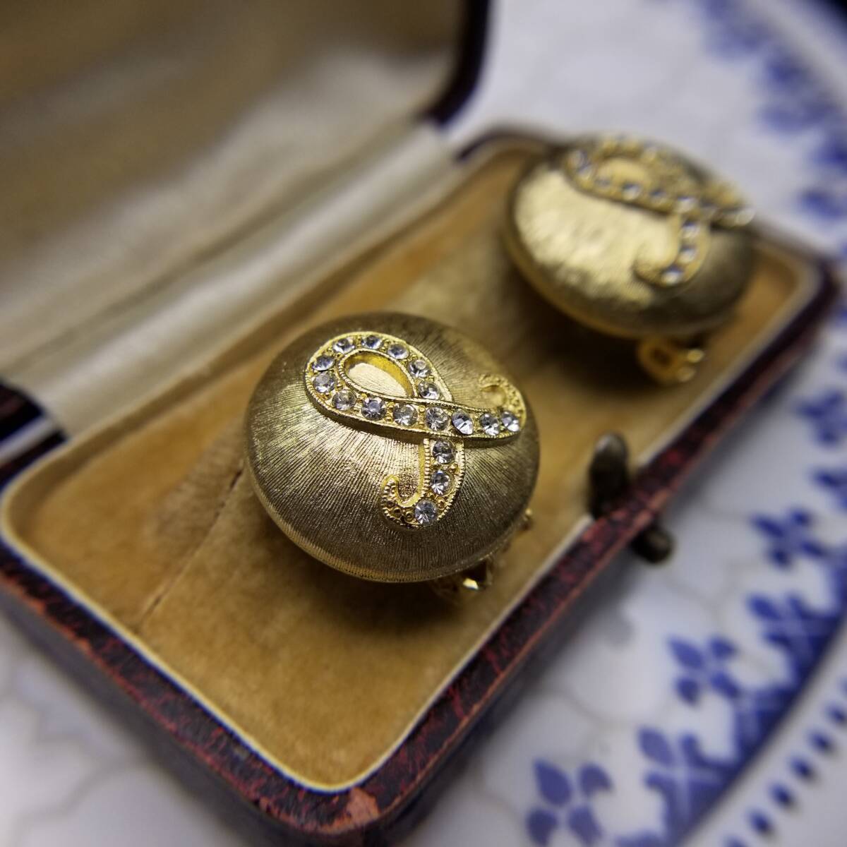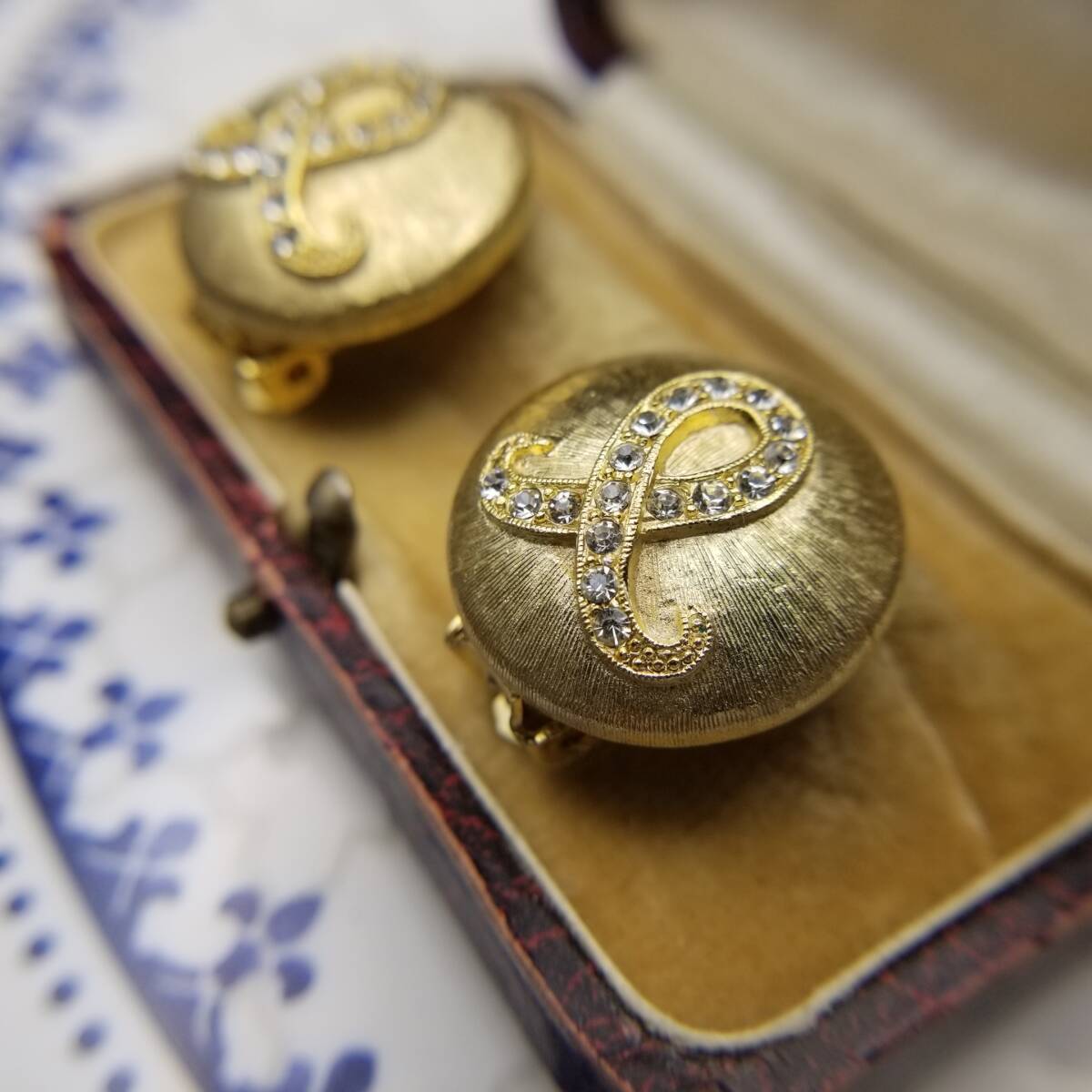 イニシャル L ラインストーン装飾 ラウンド ヴィンテージ クリップイヤリング ゴールドトーン エレガント 高級感 Y16-Z