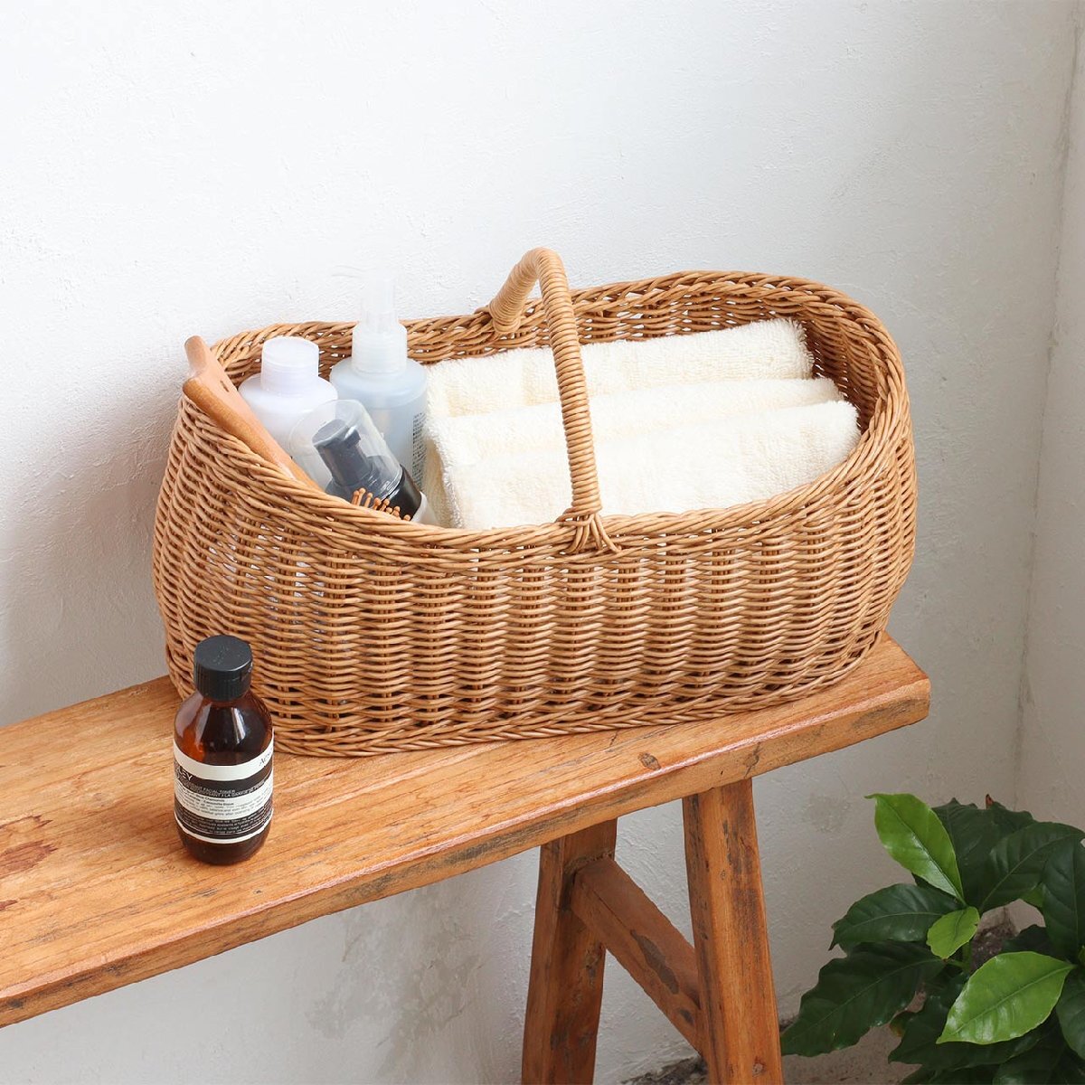 【天然素材で編まれたような自然な温かみのあるバスケット】