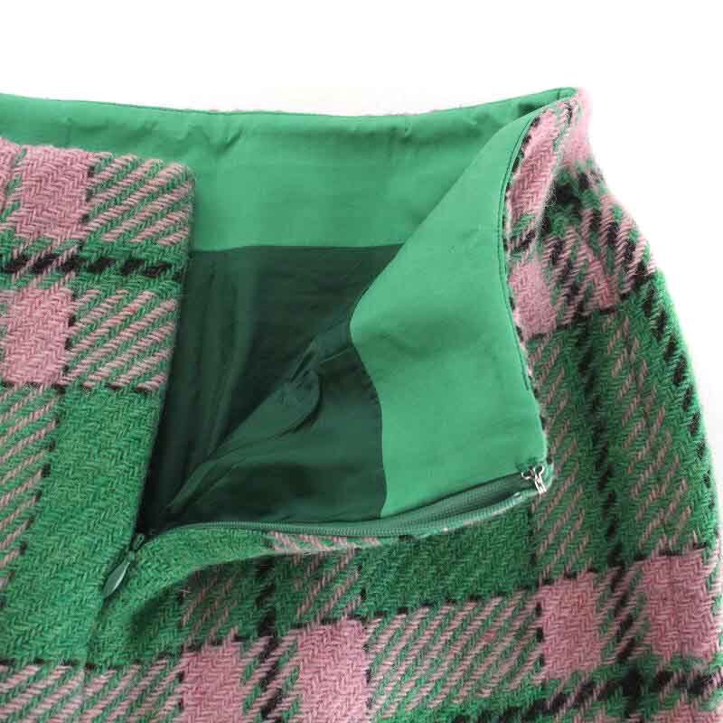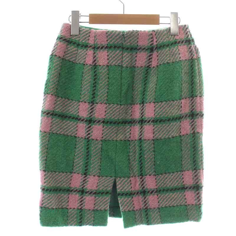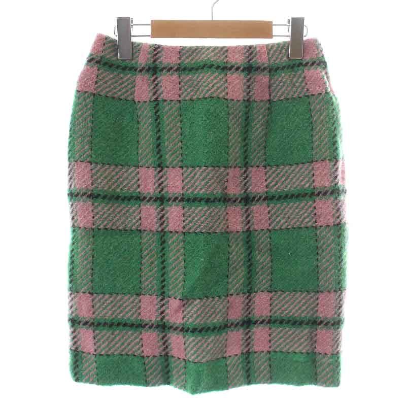 アルアバイル allureville ビックチェックタイトスカート ひざ丈 ウール 1 S 緑 グリーン ピンク 20222011310 /NW28 レディース