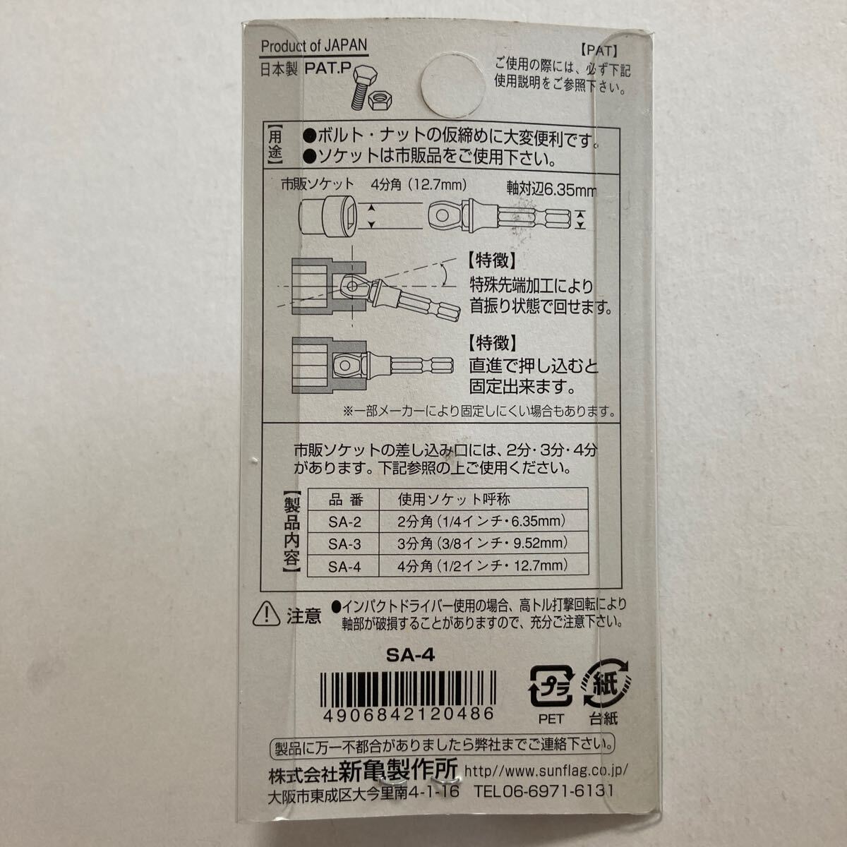 サンフラッグ4分角(12.7mm)首振りタイプソケットアダプター品番SA-4