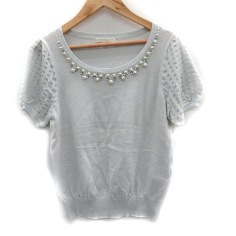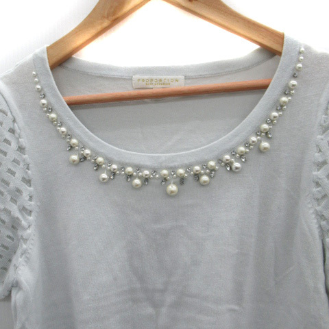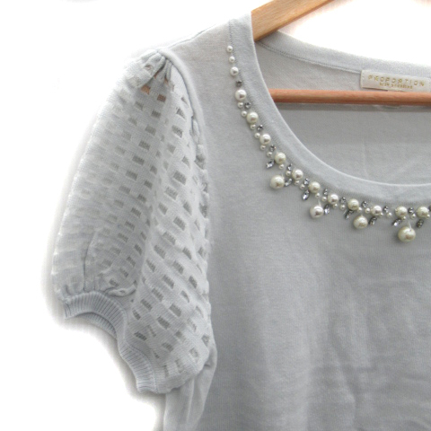 プロポーション ボディドレッシング ニット カットソー 半袖 フェイクパール ビジュー 切替 3 ライトブルーグレー レディース