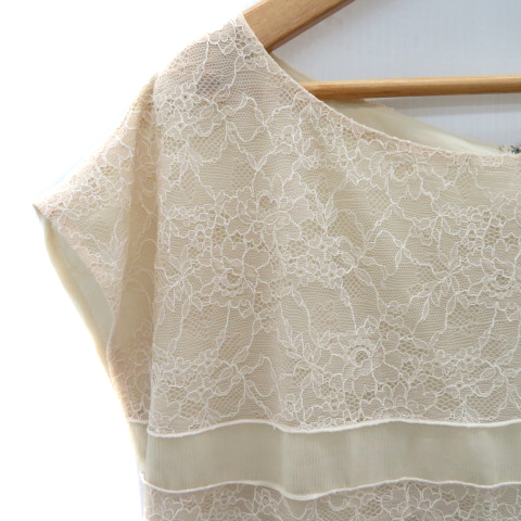 ルスーク Le souk ワンピース ミニ丈 半袖 ラウンドネック シフォン レース 36 S ベージュ /YK46 レディース