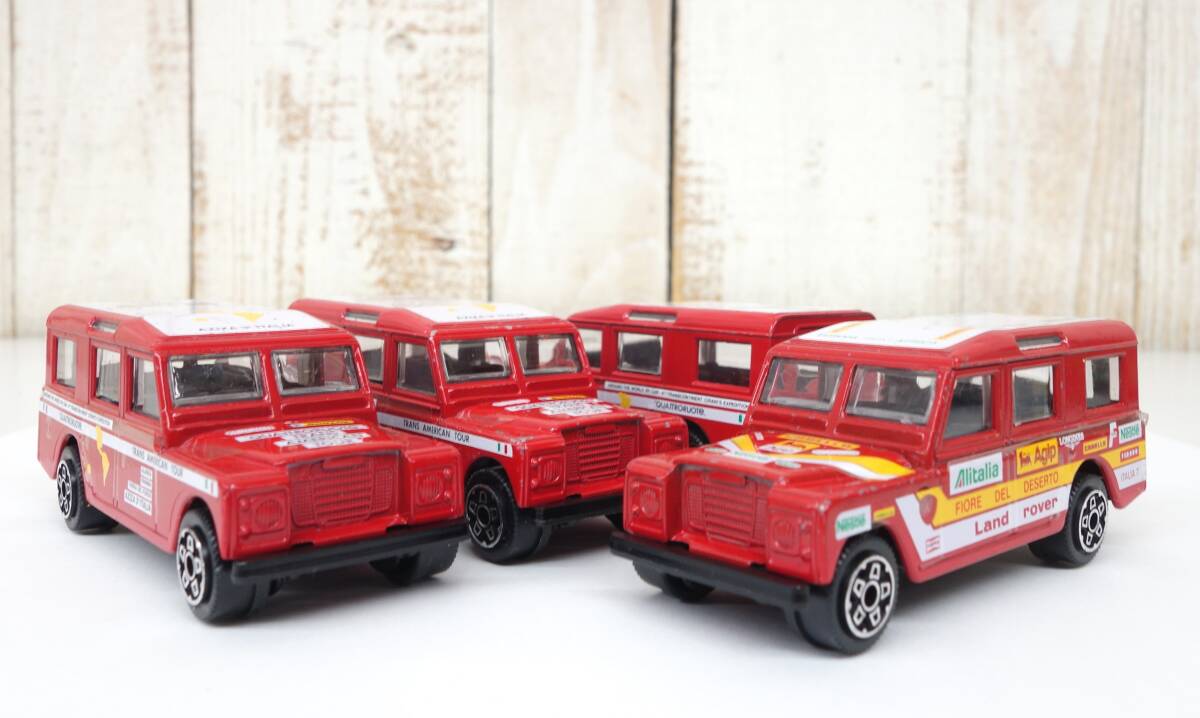 *レトロコレクション 当時物 *Burago ブラーゴ 1/47 *ダイキャストトイ ミニカー *LAND ROVER ランドローバー ディフェンダー 4台セット *TRANCE AMERICAN TOUR FIORE DEL DESERTO *MADE IN ITALY イタリア製 |