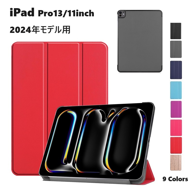 | iPad Pro 11inch 2024年モデル用 PUレザー 三つ折り スマート ケース スタンド オートスリープ機能 第2世代 アップルペン携帯可能 |