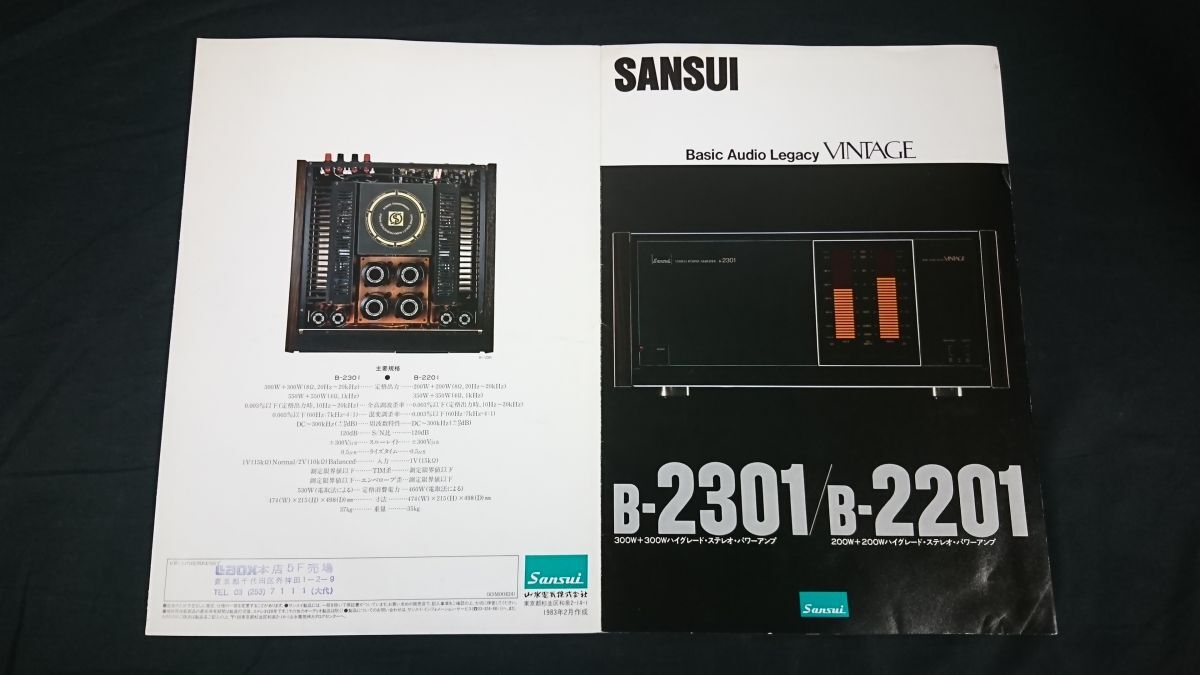| 【昭和レトロ】『SANSUI(サンスイ) Basic Audio legacy VINTAGE ハイグレード・ステレオ・パワーアンプ B-2301/B-2201 カタログ 1983年2月』山水電気株式会社 | |