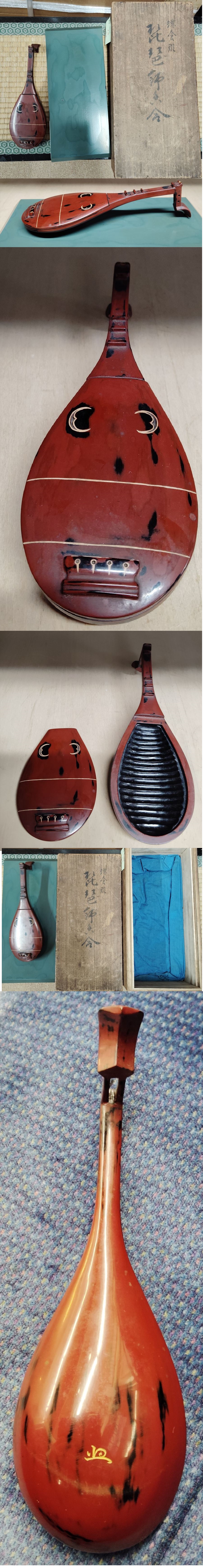 江戸時代 鎌倉彫 琵琶形 香合 花押 竹堂銘 共箱