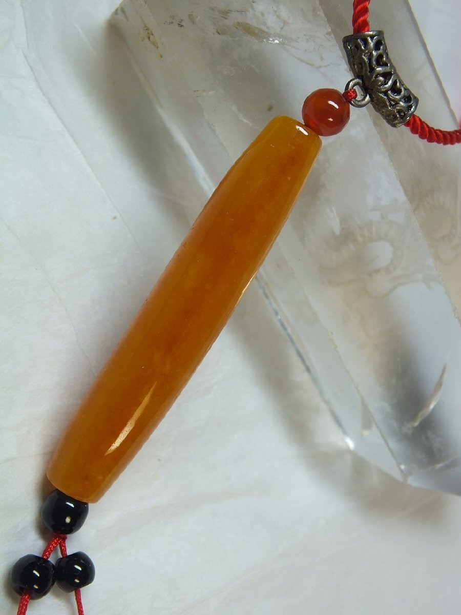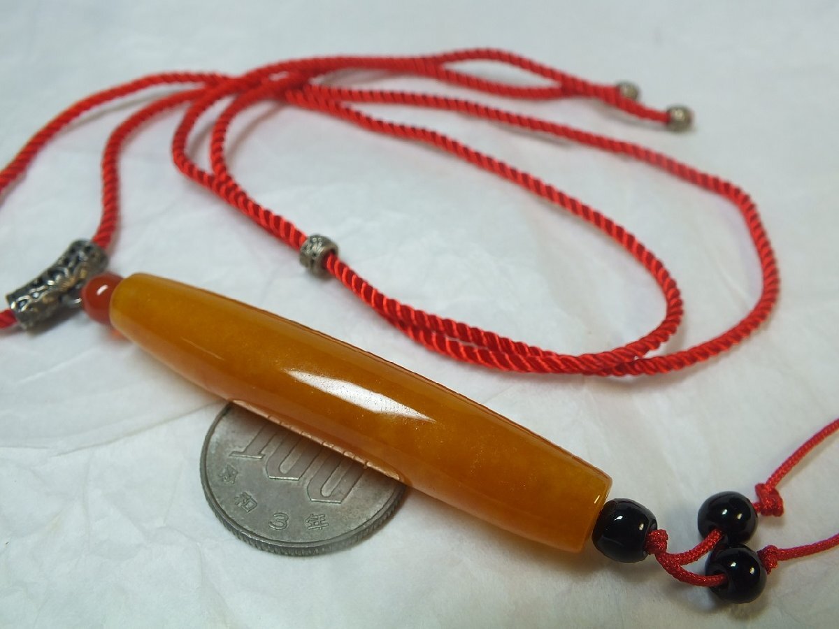 ▲▽■龍香堂■ミャンマー翡翠 管玉ペンダント「黄翡」57mm即決*△▼ | |