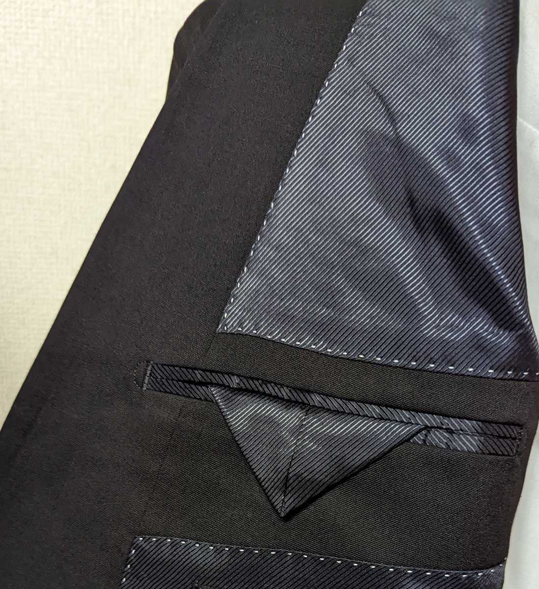 濃紺、黒っぽく見えます。 サイズ⇒YA8(82) ジャケット⇒着丈77cm、肩幅46.8cm、チェスト110cm、袖丈64cm パンツ⇒ウエスト82cm、股上26.5cm、ワタリ幅35cm、裾幅22cm、股下96cm ※測り方による誤差は生じます。 色・柄⇒濃紺、無地 表地⇒毛55%、ポリエステル45% 裏地(背抜き)⇒ポリエステル100% 袖裏⇒キュプラ100% ベント⇒サイドベンツ ステッチ⇒入り 袖ボタン⇒4個 タック⇒ノータック 商品状態⇒新品 着用季節⇒春夏 R2-712131XA |