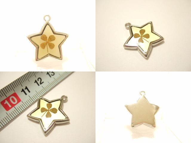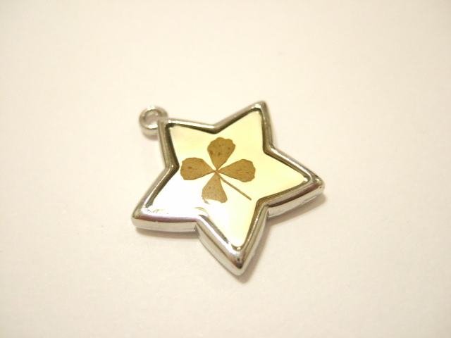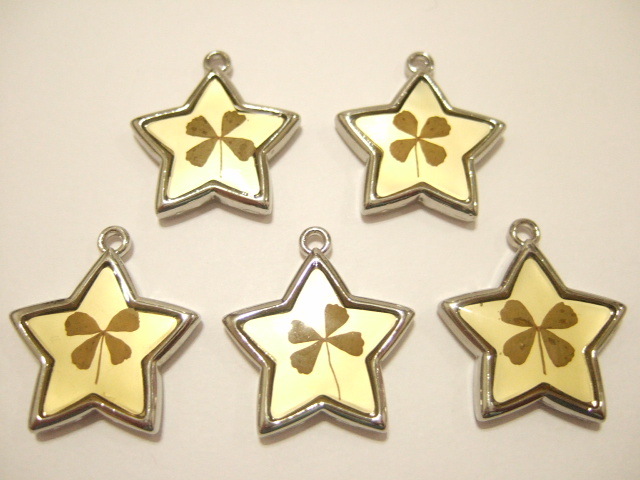 商品名 | 横浜最新 ペンダント星クローバー♪魅惑のスター本物四つ葉ベージュ パーツ5個セット Clover御守り |