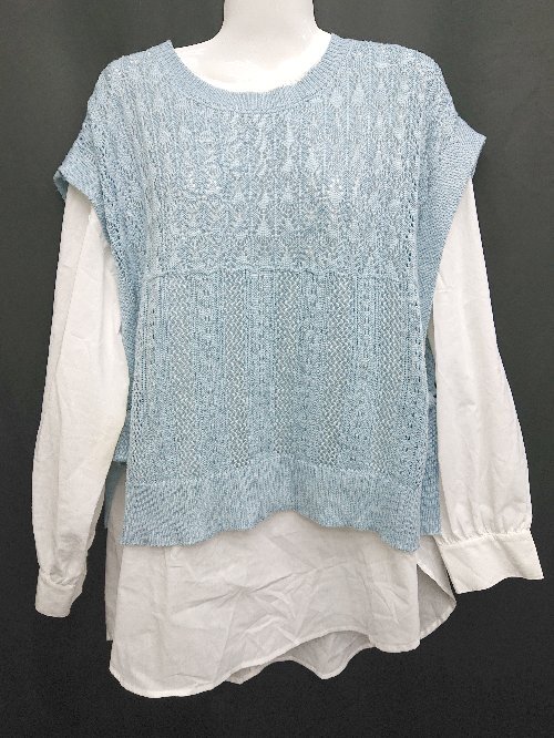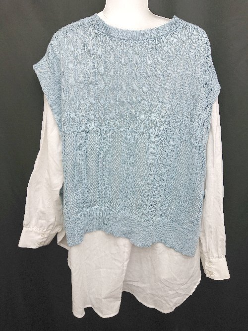 ◇ AS KNOW AS plus アズノゥアズプラス ニット ベスト シャツ アンサンブル サイズF ブルー ホワイト系 レディース P