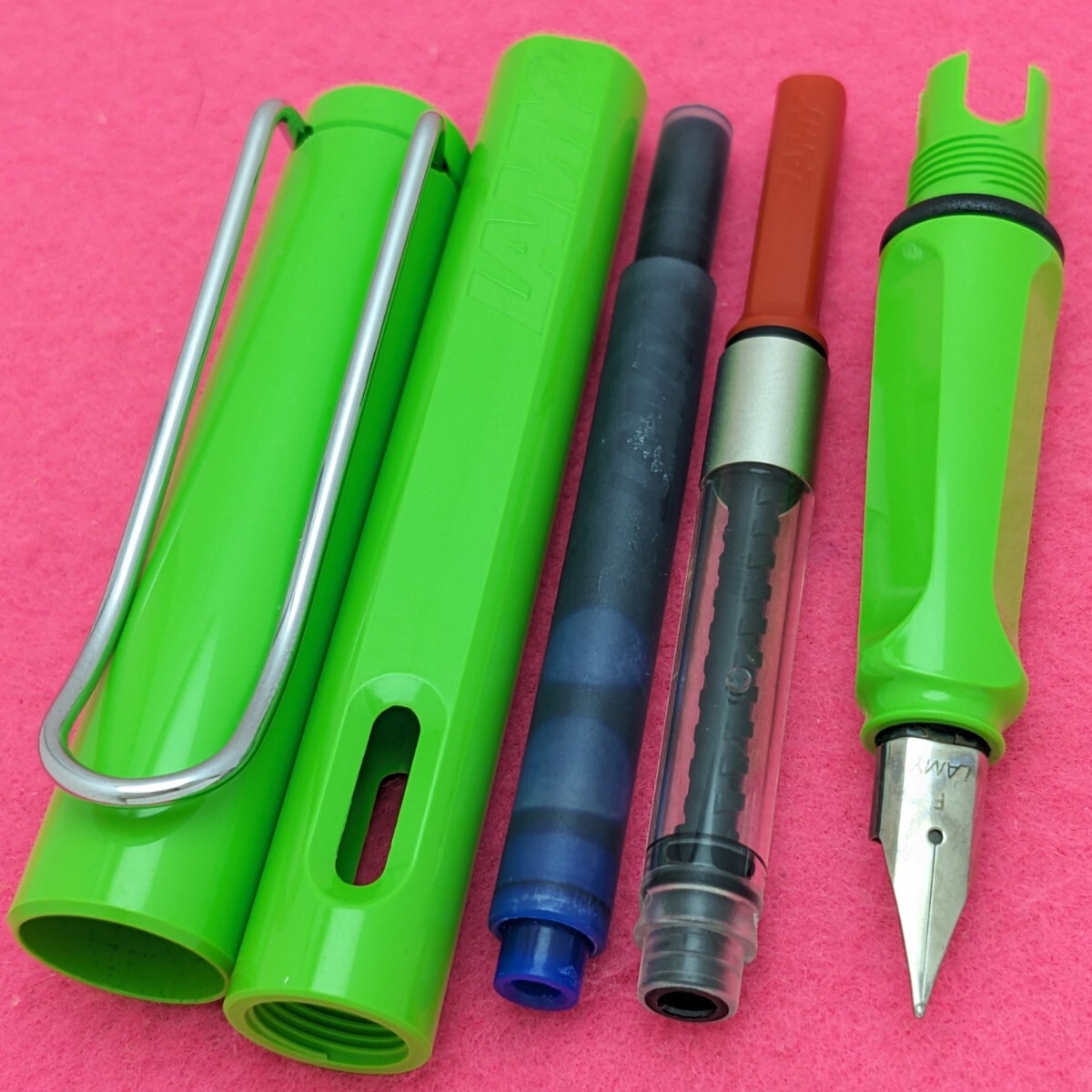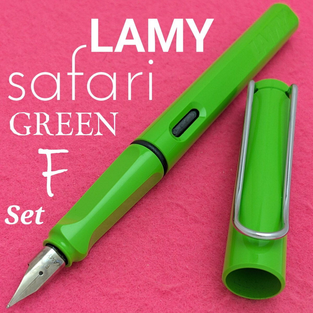 LAMY ラミー サファリ 万年筆 グリーン F / 細字 コンバーター ボトルインク 付き 中古品 3K1900