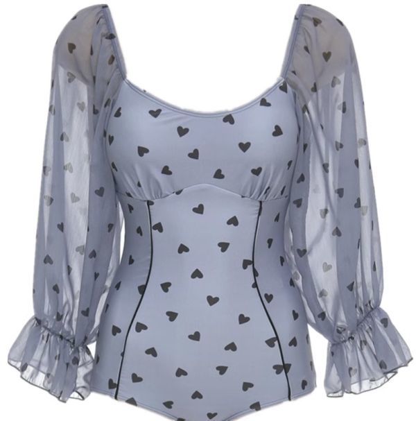 ★★★大反響の予感! レディース 水着 ワンピース パフスリーブ ハート柄 ハイウエスト h44