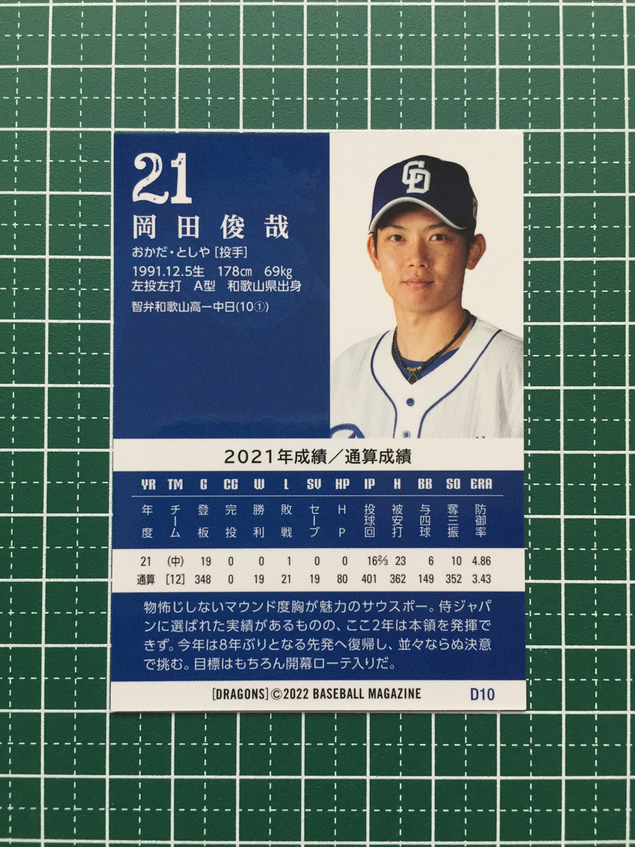 BBM 中日ドラゴンズ ベースボールカード 2022