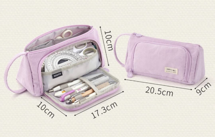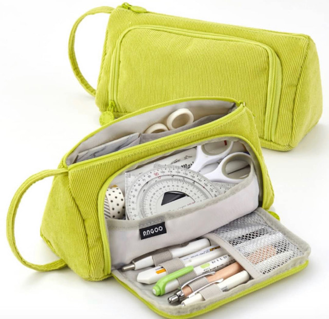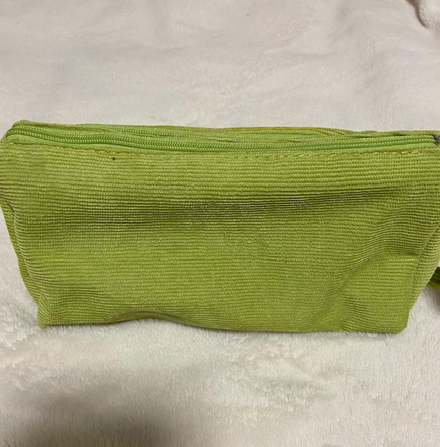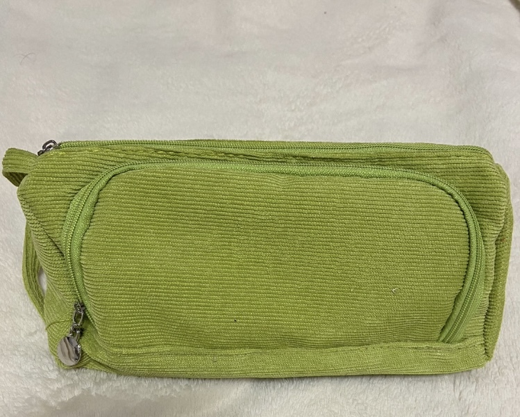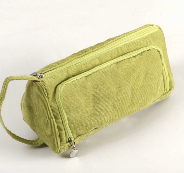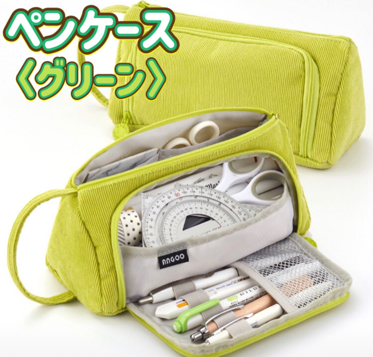 ★グリーン★ペンケース 筆箱 大容量 メイクポーチ 文房具入れ 旅行用小物入れ コーデュロイ 新学期 入学祝い 入社祝い プレゼント