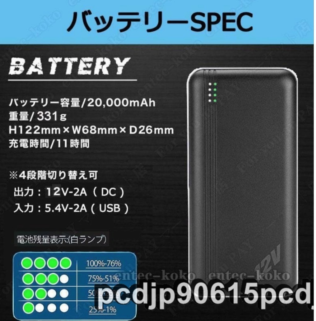 空調服 20000mAh バッテリーファンセット 空調ウェア フルセット 12V 冷却服 空調作業服 空調作業着 空調扇風服 男女兼用 薄型 夏通気性
