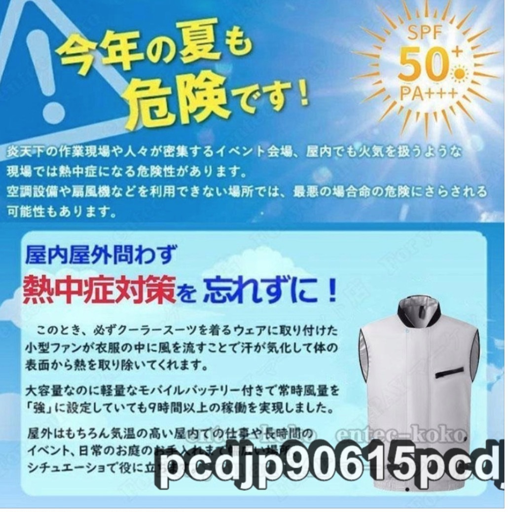 【空調作業服の使用イメージ】 レジャー・アウトドア・登山・釣り・フィッシング・のら仕事・農作業・庭いじり・草むしり・ ガーデニング・ゴルフ・野外作業・建設業・運送業・ライン工場・土木作業・鉄工業・イベントなどの 使用で大活躍します。 炎天下の作業で涼しい服をお探しの方にぴったりです。 空調作業服は用途に合わせてベスト・半袖・長袖をご用意しております。 【セット内容】 (1)空調作業服×1+12vファン+接続ケーブル×1+20000mAh専用バッテリー×1 カラー:ライトグレー、迷彩ブラック、迷彩ブルー 素材:ポリエステル サイズ:S、M、L、XL、2XL、3XL(詳しいサイズは画像をご覧ください) ◎ サイズが合わない、商品の形や機能がイメージと異なる、色が イメージと違うなどの理由での返品はお受け致しておりません 空調服 20000mAh バッテリーファンセット 空調ウェア フルセット 12V 冷却服 空調作業服 空調作業着 空調扇風服 男女兼用 薄型 夏通気性 ★商品写真はできる限り実物の色に近づけるよう努めておりますがご使用のPCモニター設定や部屋の照明により多少、色の変化が感じられる場合がございます