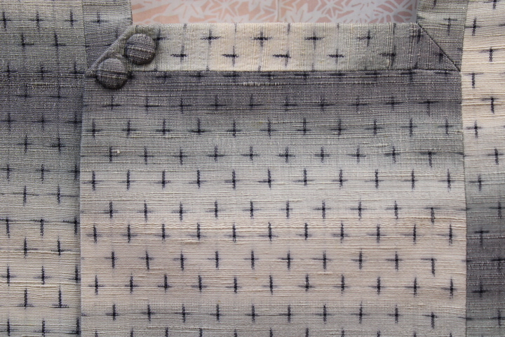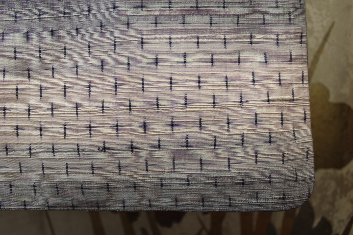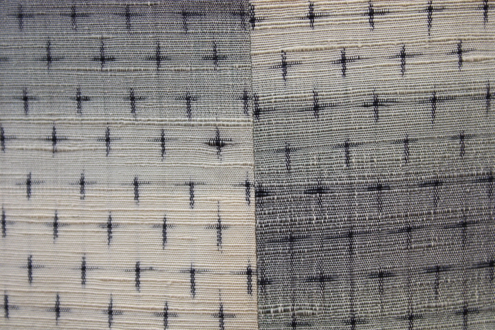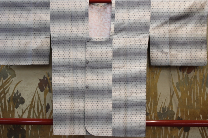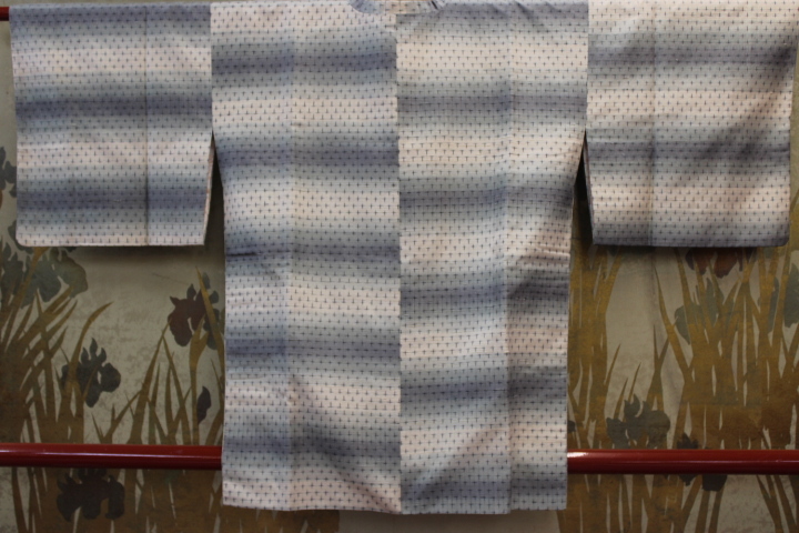 道行コートコレクション 高級正絹ザックリ紬 緯糸に太糸に先染の十字絣織 後染の横段ぼかし染