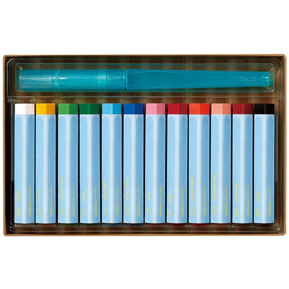 【セット内容】水彩パステル12色+みず筆スリムタイプ1本+取り扱い説明書