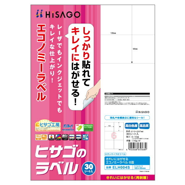 きれいにはがせるエコノミーラベル 6面