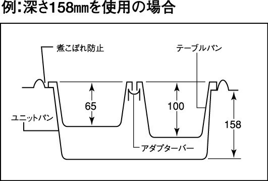 ホテルパンに入れた料理を湯煎や、底に氷を入れて冷やすことができます。