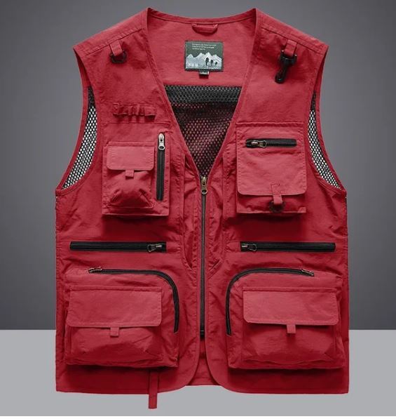 【赤・3XLサイズ】男性用タクティカルベスト,タクティカルウエストジャケット,ニット,ノースリーブ,ポケット付き