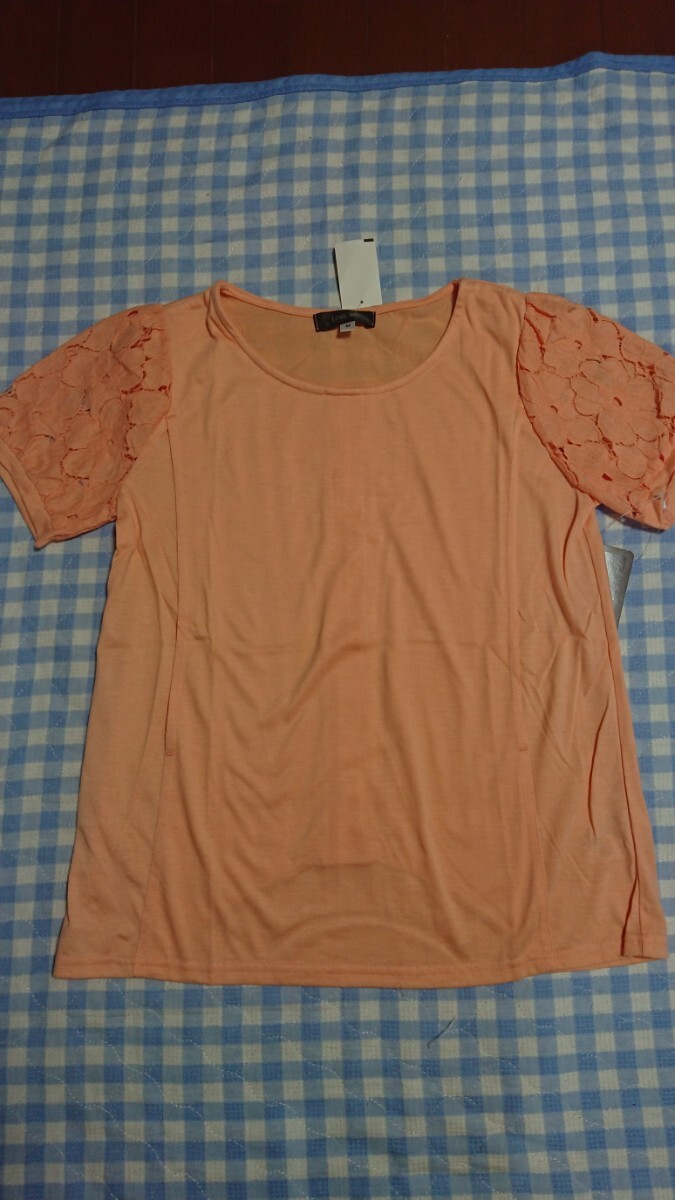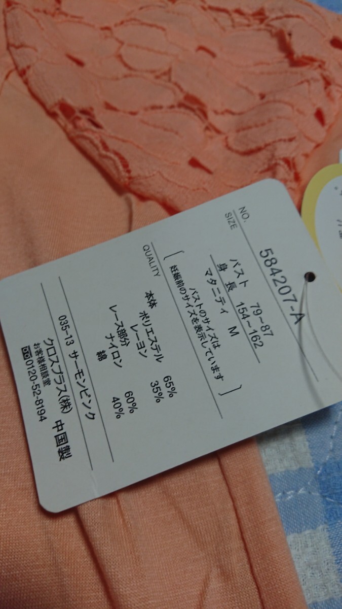 〇443☆未使用・保管品☆マタニティ☆授乳服☆袖レース素敵な半袖カットソー サーモンピンクМ
