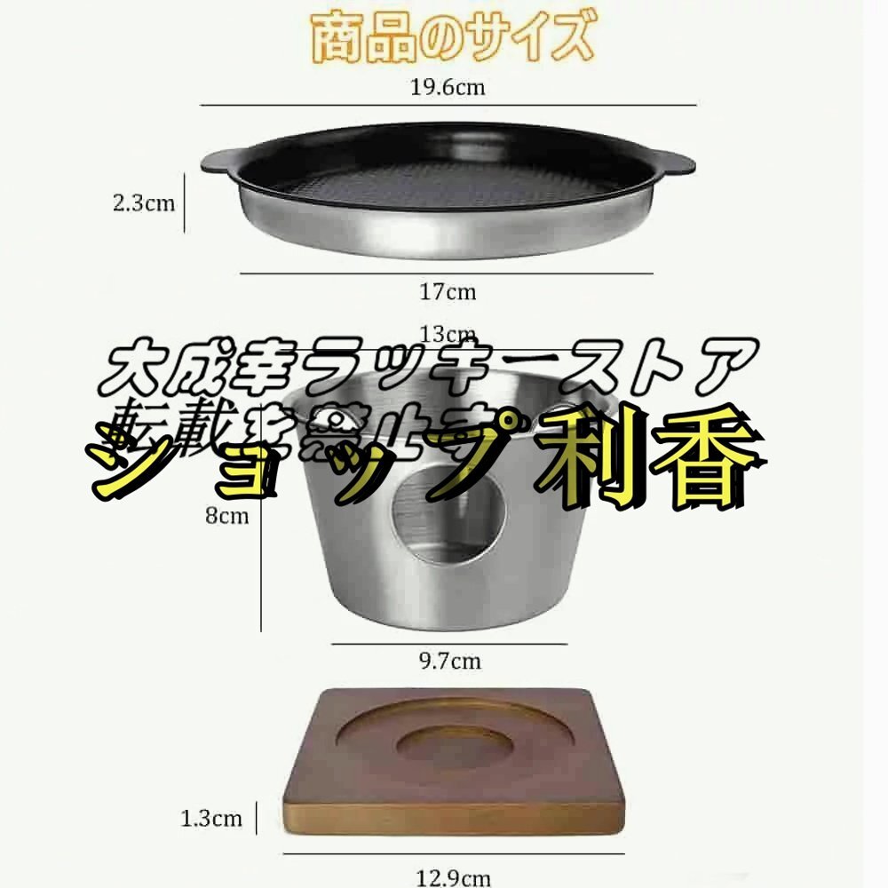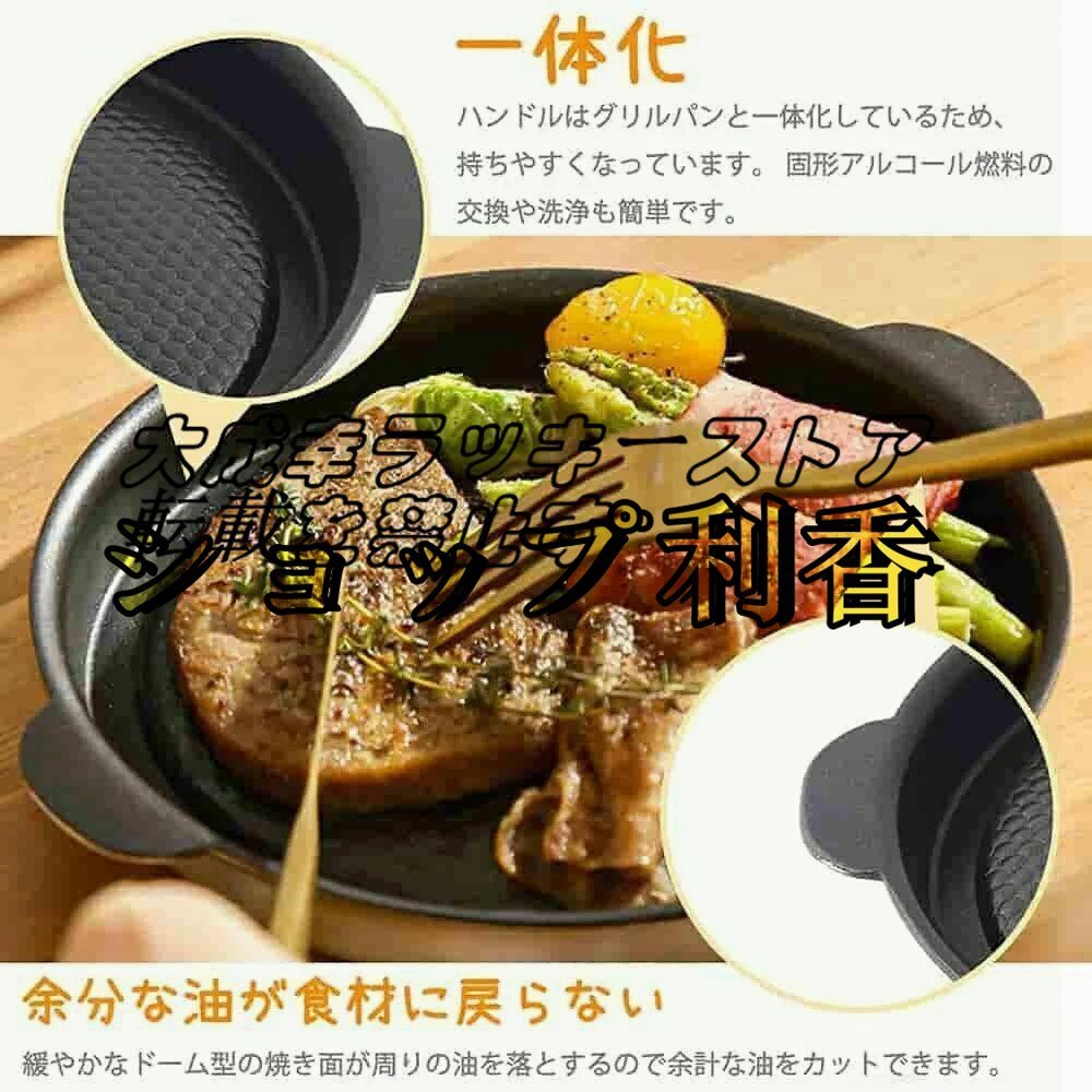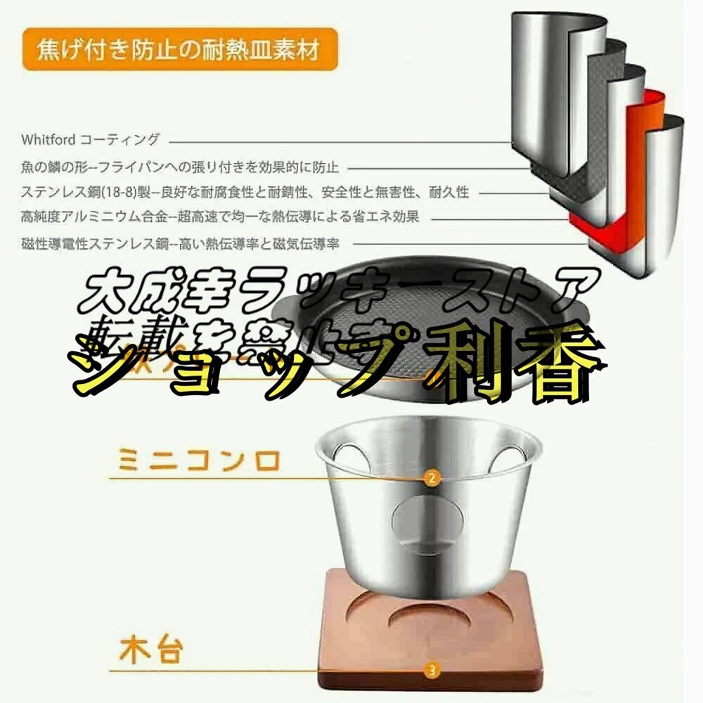 【焼肉プレート ひとり用】焼肉プレートは一人分に最適なサイズなので、清潔で衛生的な状態を保ちながら、好きなだけ焼くことができます。 【焦げ付き防止のプレート】魚の鱗のエンボス加工コーティングはフライパンへの張り付きを効果的に防止,そして、使用後のお手入れもスピーディーに行えます。 【高品質の素材を使用】焼肉プレートは、保温性と熱伝導性に優れた多層構造で、熱の消費を最大限に抑えます。 底層には熱伝導性と磁気伝導性を持つステンレスを使用し、直火とIHコンロで使用できます。 【持ち運びが便利】炭を焚いたり、ガス缶を使う必要がなく、固形燃料でOK。直径16cmのグリルパン、着脱可能なデザインは持ち運びに便利で、屋内だけでなく、屋外でのピクニックにもおすすめです。(固形燃料は自分で購入する必要があります) 【専用木台付き】専用木台とのマッチング、断熱効果でテーブルを保護するだけでなく、ローストをより雰囲気のあるものにすることができます。 一人分のローストタイムを快適にします。