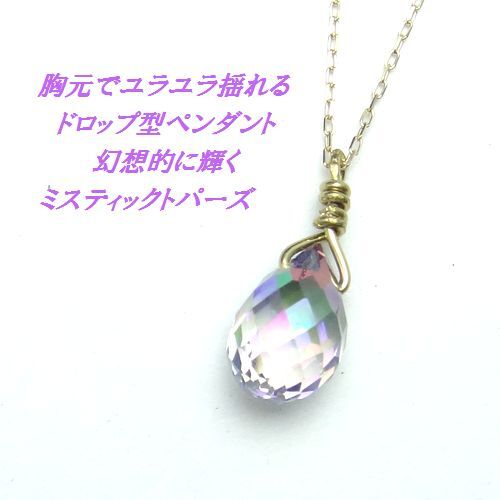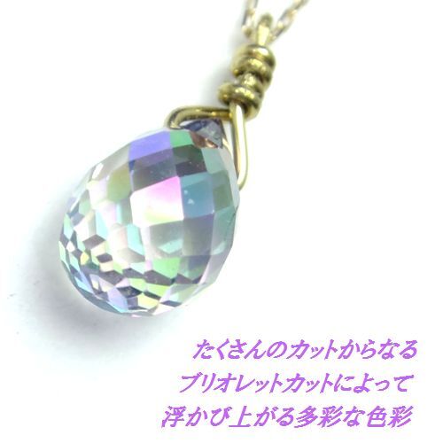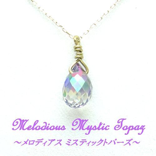K10 メロディアス ミスティックトパーズ ブリオレット ペンダント YG WG ネックレス 40cm ジュエリー ドロップ 雫 ゆらゆら揺れる 箱付き