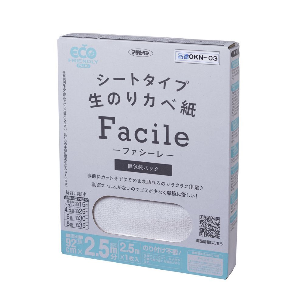 紙管・裏面フィルムがないので、裏面フィルムをはがす必要がなく、広げてそのまま貼れます。カベ紙はあらかじめ2.5mの長さにカットしていますので、一般的な家屋の壁に対してカベ紙をカットせずに貼れます。