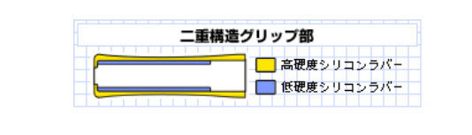 外側を内側よりも高硬度とした二重構造にすることで、適度な柔らかさを保ちながらも、安定感のある握りが可能です。また、表面 のさらっとした手触りも特長です。