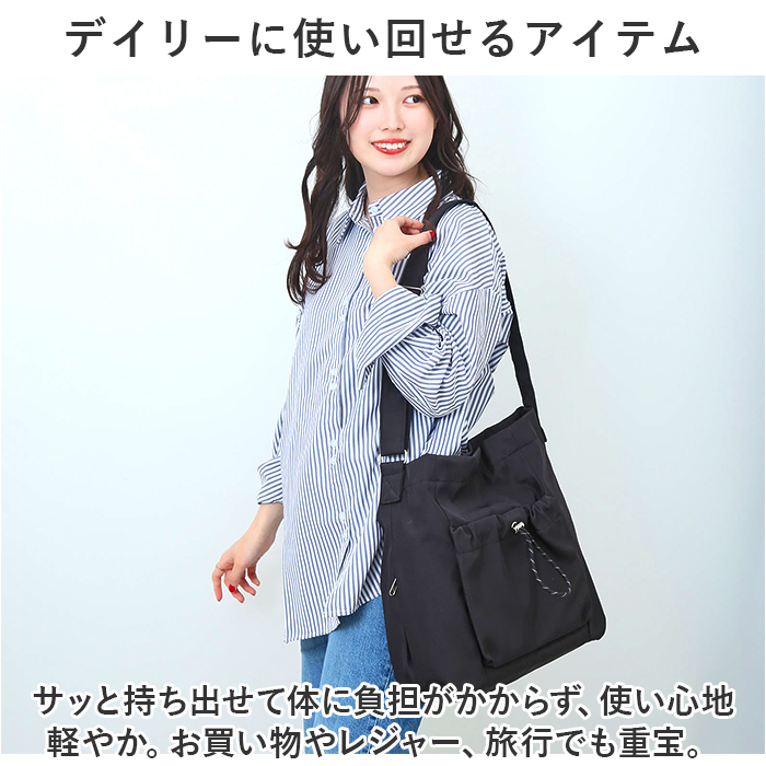 サイズ | [縦]約35cm/[横(底部)]約30cm/[マチ]約12.5cm [ショルダー]約55cm~約102cm(調節可能) ※サイズは当店計測の実寸サイズです。実際の商品ならびにメーカー表記サイズとは多少の誤差が生じる場合がございます。あらかじめご了承ください。 |